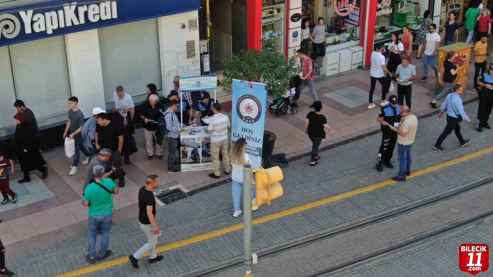 Eskişehir’de polis ekiplerince yaklaşan Kurban Bayramı’nda huzur ve güvenin sağlanmasına yönelik vatandaşlara broşür dağıtıldı, dolandırıcılık ve sahtekârlıklarla ilgili bilgi verildi.