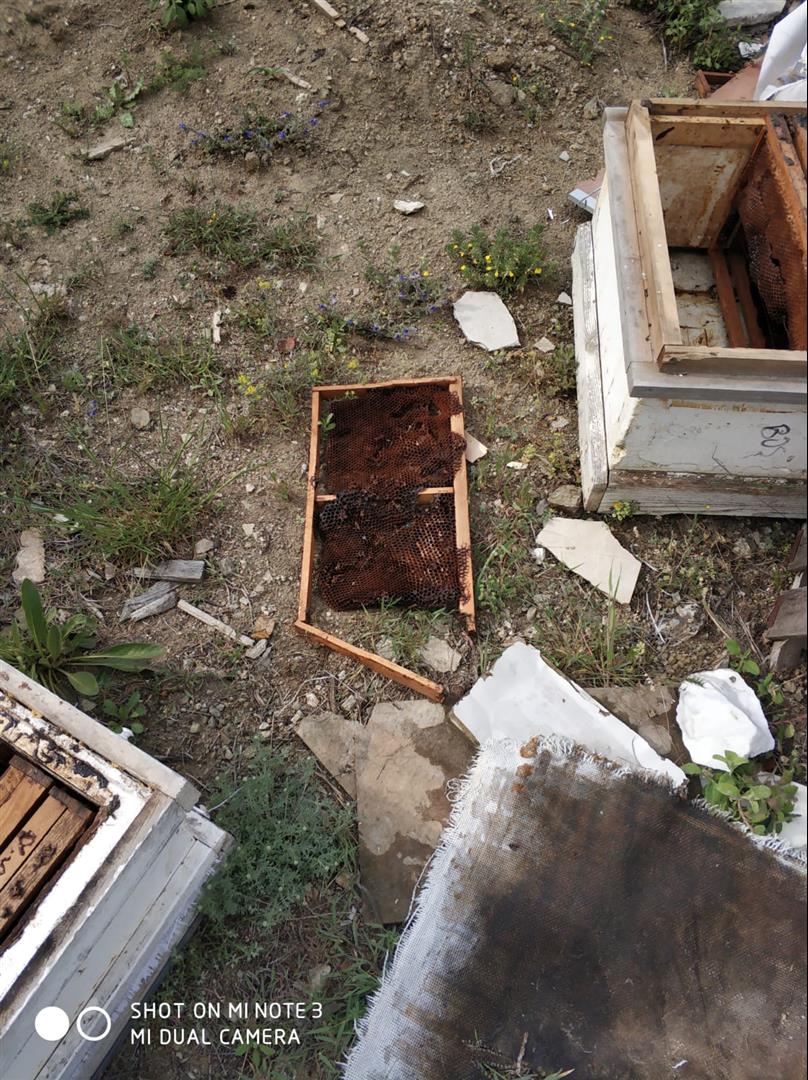 Bilecik’te bayram ziyaretinden dönen arı üreticisi Fevzi Can, gördüğü manzara karşısında şoka uğradı.Kent merkezinde bulunan 500 Evler mevkisinde 10 yıldır arıcılık yapan Fevzi Can, bayramın ardından kovanlarına bakmak için arazisine geldi. Burada tüm kovanlarının ve bahçesinin talan edildiğini gören Can, ayının ayak izlerini fark etti.