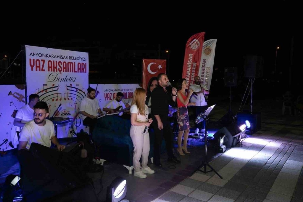 Afyonkarahisar Belediyesi sanatseverlere muhteşem bir müzik ziyafeti yaşattı. ‘Yaz Akşamları Konseri’ adı altında düzenlenen etkinliğe vatandaşlar büyük ilgi gösterdi. Veysel Eroğlu Parkında gerçekleşen konserde belediye orkestrası, en sevilen parçaları seslendirdi.