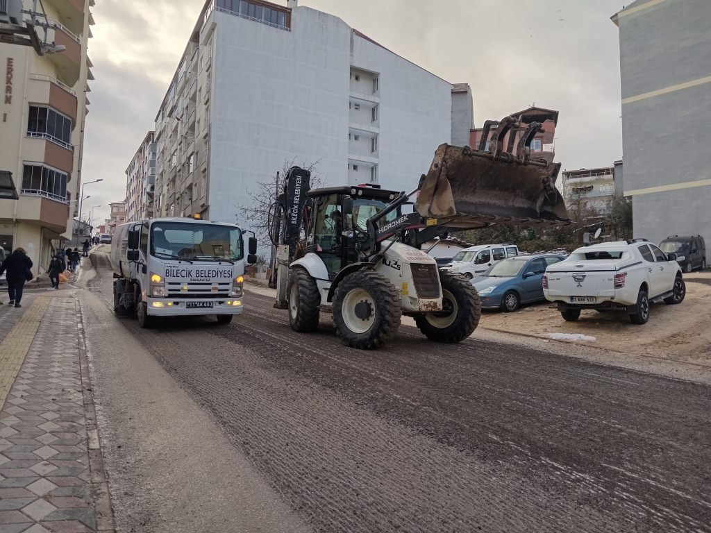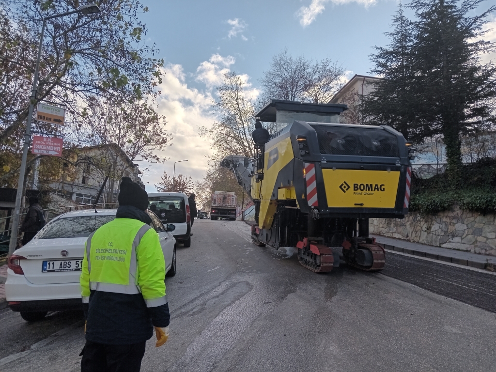 Bilecik Belediyesi tarafından gerçekleştirilen çalışma kapsamında birçok noktada yer alan eğimli yollar, tıraşlanarak güvenli hale getirildi.