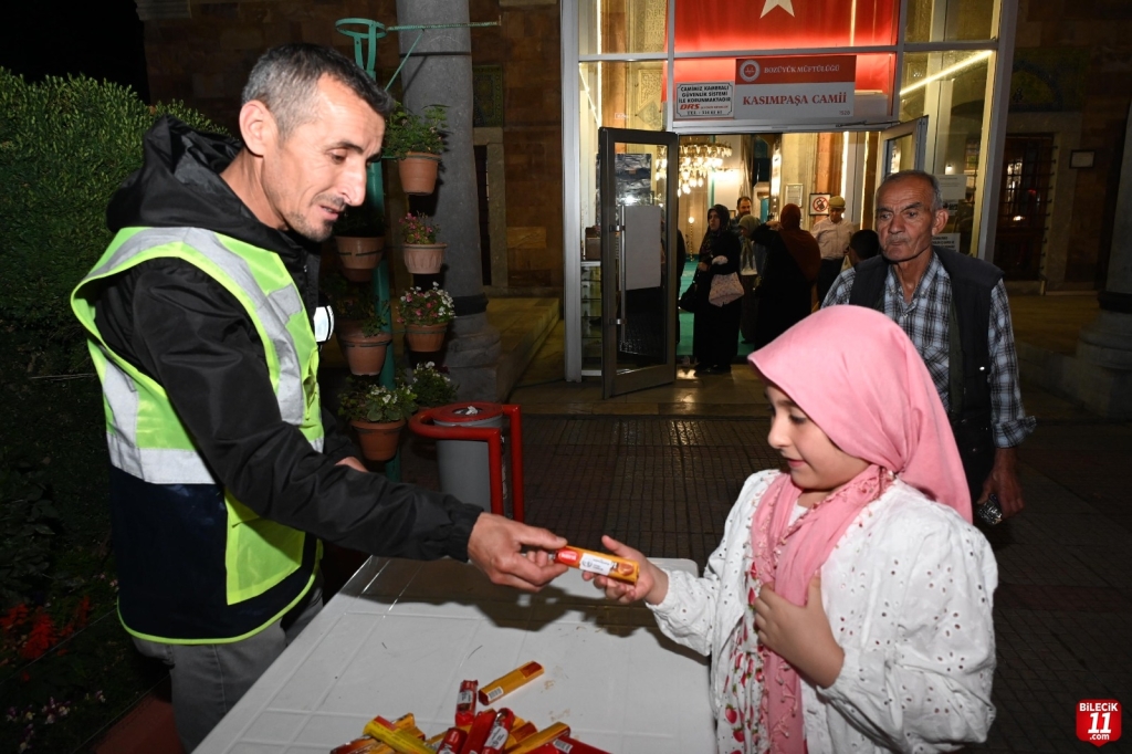 Bozüyük Belediyesi tarafından geleneksel hale gelen kandil ikramları Mevlid Kandili’nde yapılan şeker ikramı ile devam etti.