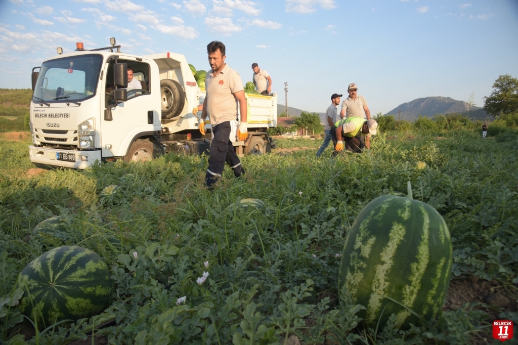 Bilecik Belediyesi tarafından gerçekleştirilen çalışma kapsamında tarlalarda toplanan yaklaşık 50 ton karpuz, şehir merkezi ve mahalle konakları önünde vatandaşlara ücretsiz dağıtıldı.