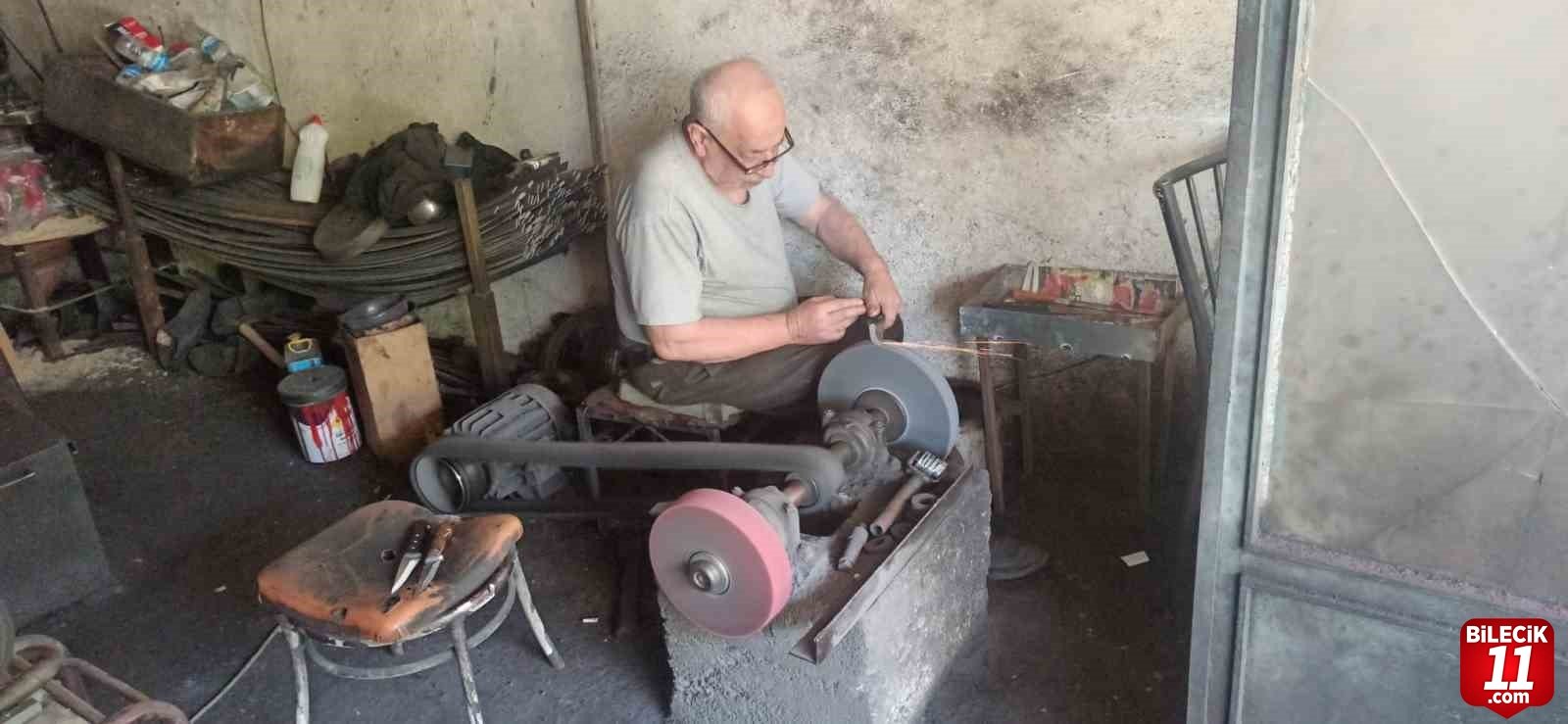 Bilecik’in Osmaneli ilçesindeki Küçük Sanayi Sitesi’ndeki bıçak ustası Mehmet Çeşmeci’nin iş yerinde bayram öncesi bıçak ve satırlarını biletmek isteyen vatandaşlar zaman zaman kuyruk oluşturuyor.