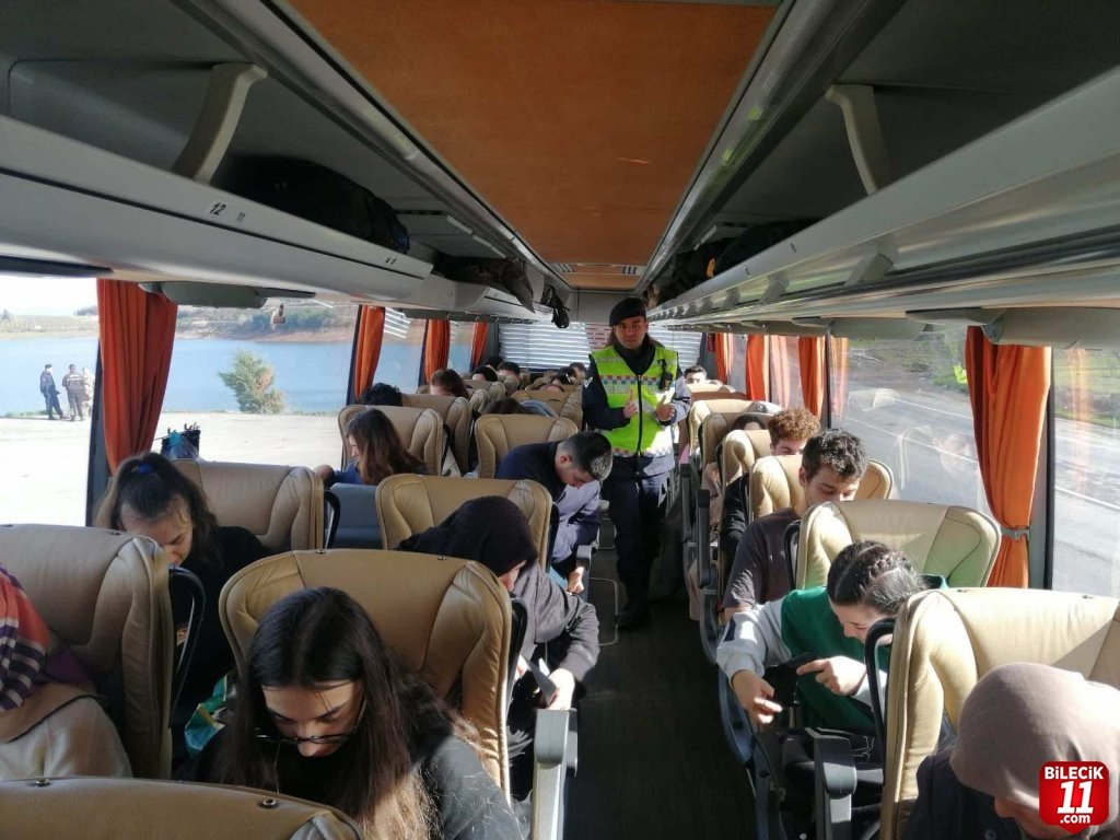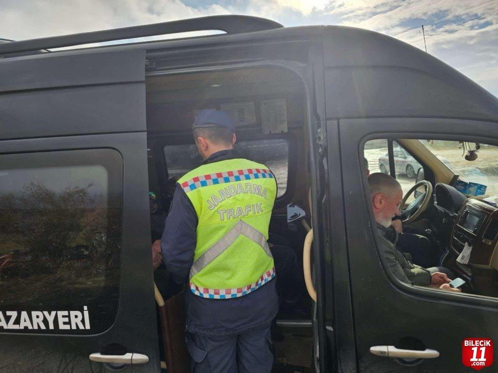Bilecik İl Jandarma Komutanlığı Trafik Timleri, otomobillerde ve otobüs içlerine girerek kazalarda emniyet kemerinin önemini vatandaşa tek tek anlattı.
