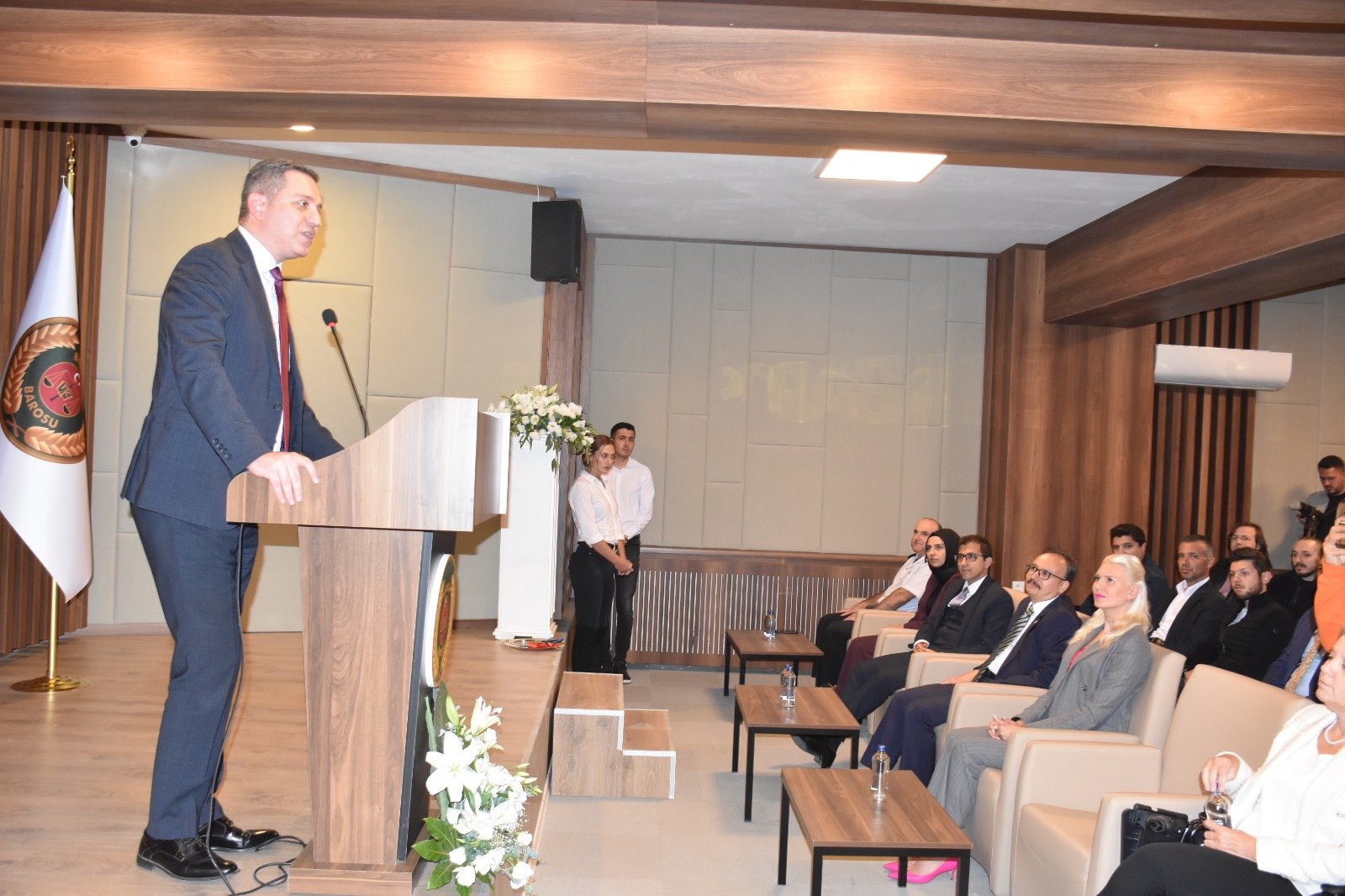 “Bugün bizim açımızdan çok mutlu bir gün. Sebebine gelecek olursak, bugün protokol ziyaretlerimizde öncelikle Sayın Belediye Başkanımıza ve valimize ziyaretlerimizi gerçekleştirdik. Orada bulundukları binaların geçmişten gelen yaşanmışlıkları da dahil olmak üzere binaların ruhları üzerine sohbetler gerçekleştirdik. Binaların ruhu çok önemlidir. Bazen bu geçmişten gelen yaşanmışlıklar tarih ve binaların mimarisiyle ortaya çıkar bazen de binaların işleviyle ortaya çıkar. İşte içerisinde bulunduğumuz bu bina da sadece taştan kiremitten çimentodan ibaret değil bu bina bu huzurda gördüğünüz kürsüde edilecek hukukun üstünlüğü üzerine edilecek onlarca yeminle vatandaşların savunma haklarına erişimini adalete erişimlerin en önemli parçası olan avukatları, stajyer avukatları meslektaşlarımızı yetiştiren ve onları adalet sistemine kazandıran unsurların en başında gelen yer haline gelecek.