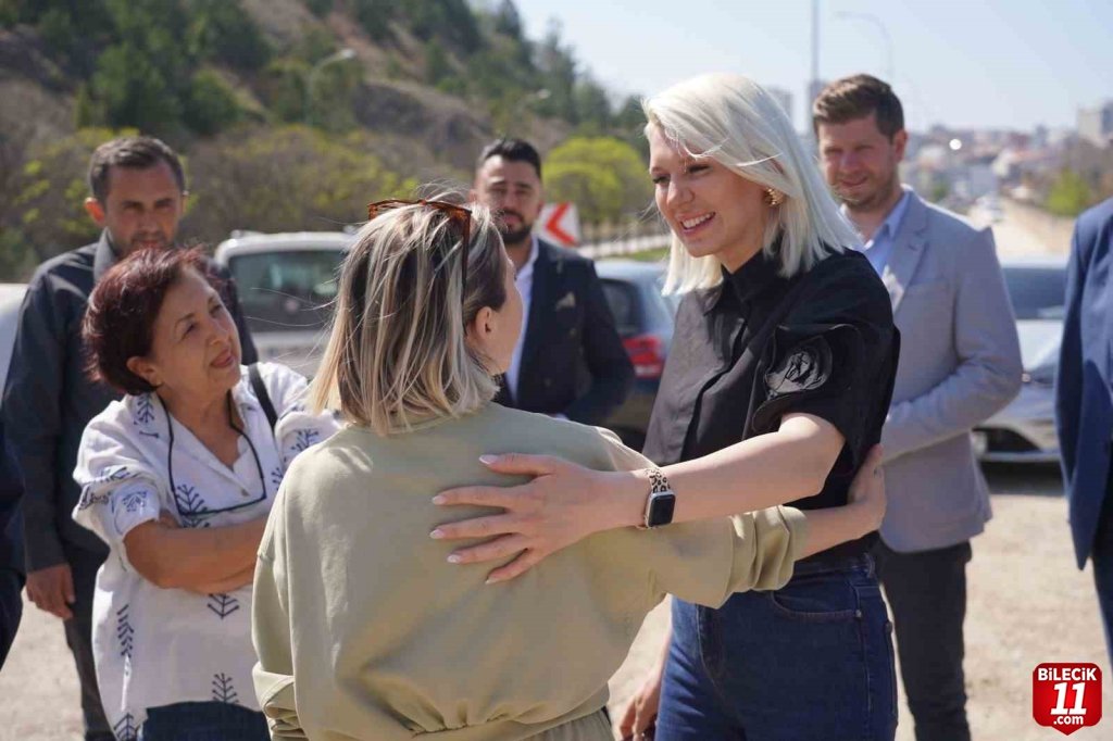 Bilecik Belediye Başkanı Melek Mızrak Subaşı, mezarlık ziyaretine gelen vatandaşlara çiçek hediye etti.