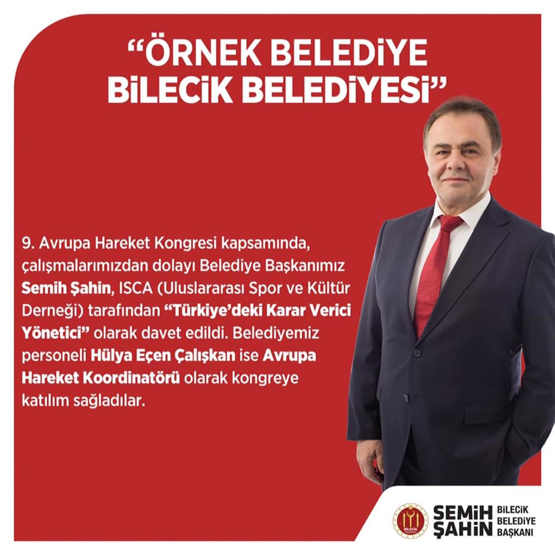 Başta sportif, kültürel ve sanatsal çalışmalarda gerçekleştirdiği çalışmalar ile yakından takip edilen Bilecik Belediyesi, düzenlenen kongreye örnek belediye olarak davet edilirken, Belediye Başkanı Semih Şahin ise Türkiye’de karar verici yönetici olarak davet edildi.