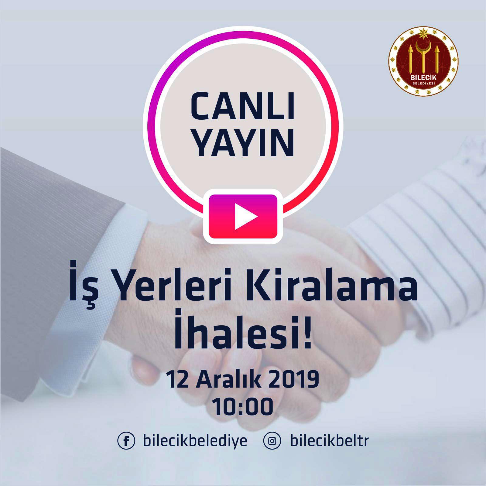 Mülkiyeti Bilecik Belediyesi’ne ait muhtelif iş yerleri ile Bilecik Belediyesi Şehirler arası Otobüs Terminalinde yer alan yazıhane ve dükkanlar için yapılacak ihale, Bilecik Belediyesi sosyal medya hesaplarındaki Canlı yayın ile gerçekleştirilecek.