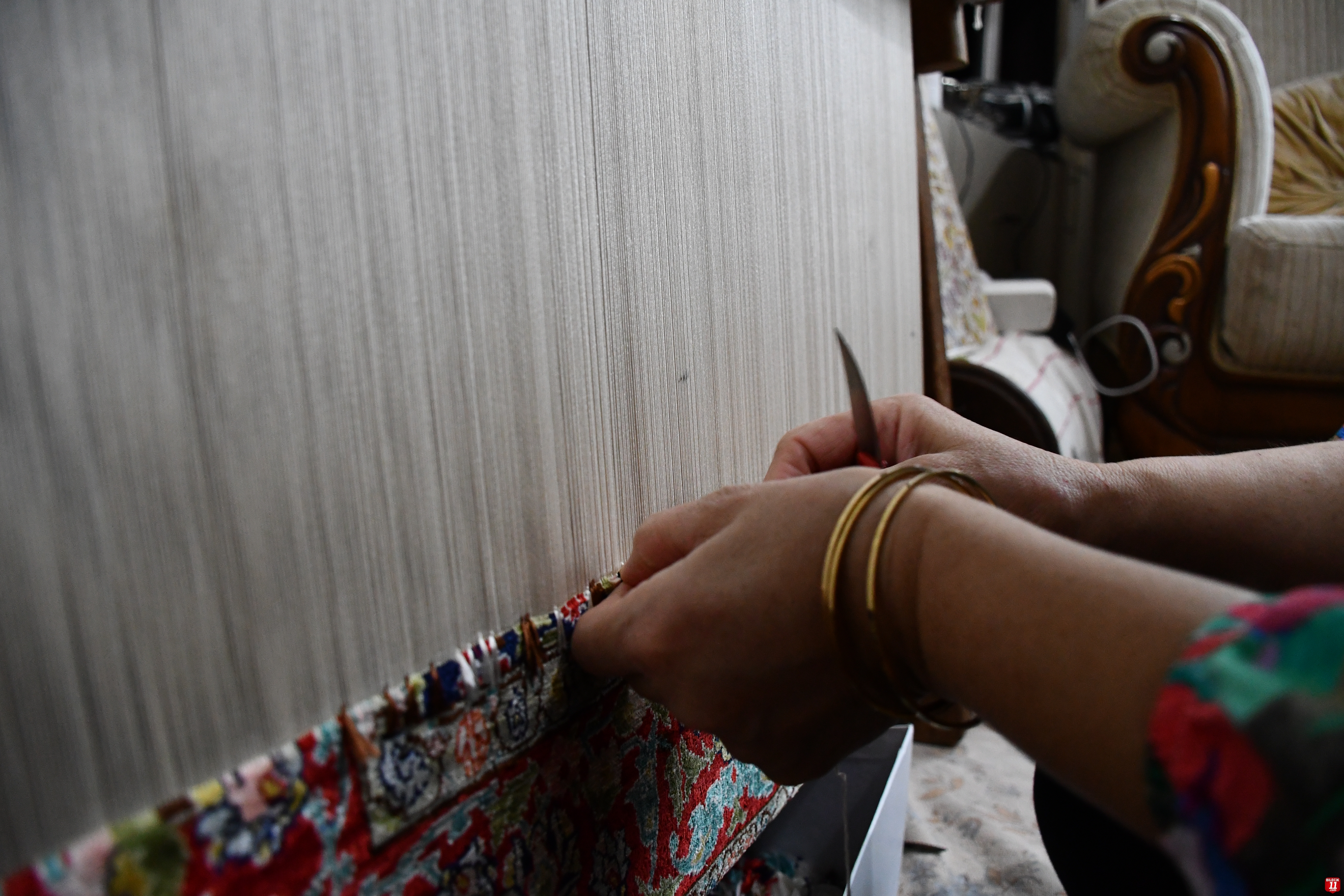 “Genelde Sanat Sokağı’ndaki atölyemde üretim yapıyorum. Önce dikey tezgahlarda çözerek başlıyoruz. Sonra gücüsünü (arka ve ön çözgü tellerinin ayrılması) yapıyoruz. Akabinde kilidini yaparak dokumaya başlıyoruz. Ürünün bitmesi boyutuna göre değişiyor. Örneğin bir seccade 4 ila 6 ay arasında bitebiliyor. Ebat büyüdükçe süre uzar. Günümün 1-2 saatini çatma dokumaya ayırıyorum.”