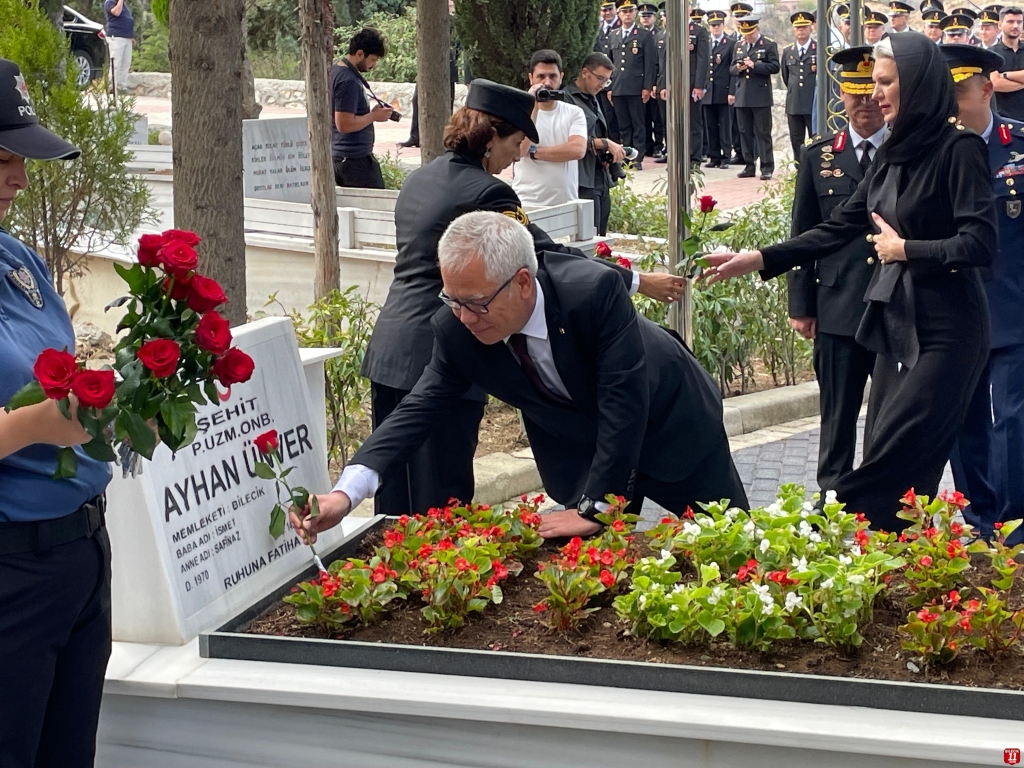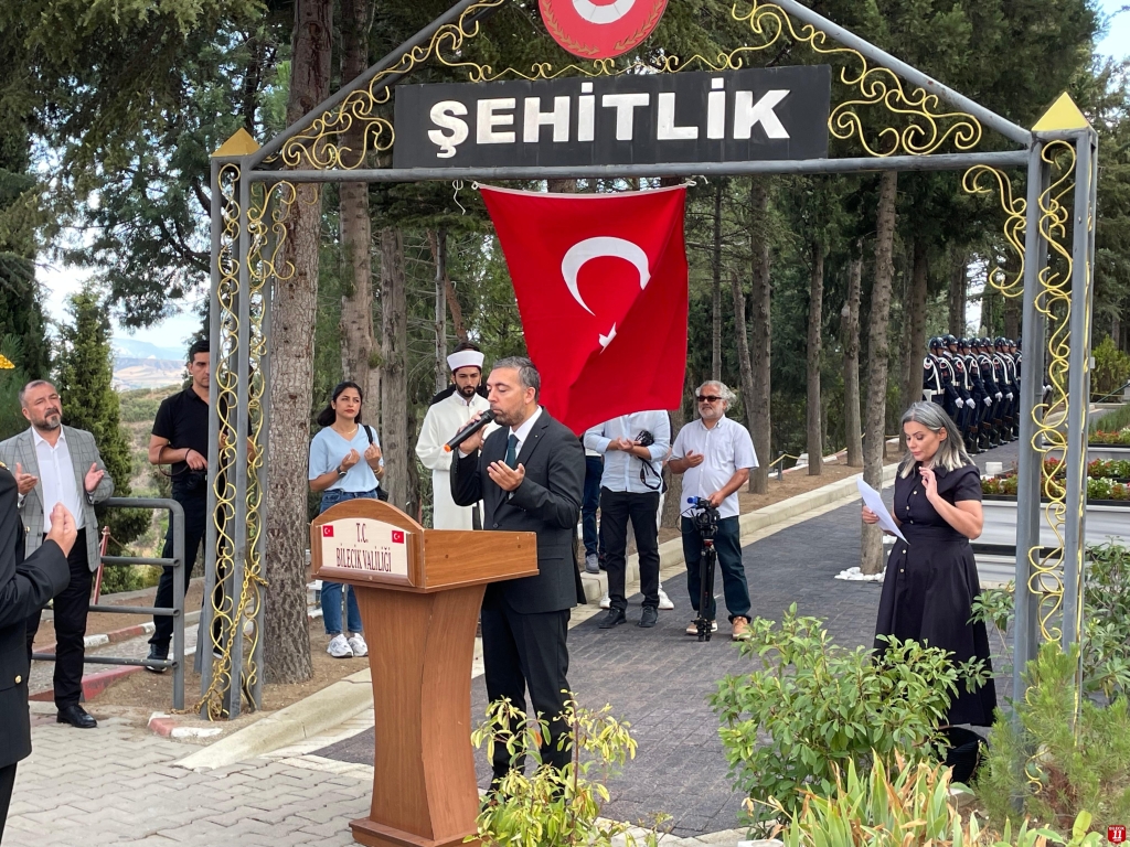 Garnizon Komutanı Hava Pilot Tümgeneral Ali Özmen, Bilecik Valisi Vekili Akgün Corav ile beraberindekiler, daha sonra şehitliğe giderek mezarlara karanfil bıraktı. Ardından dualar edildi.