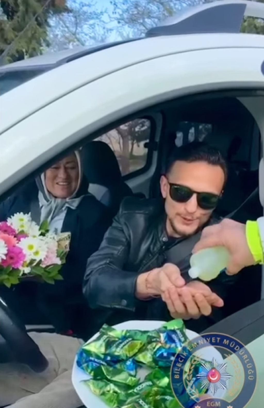 Ekiplerin bayram süresince yaptıkları denetimlere zaman zaman ara vererek sürücülerin bayramlarını kutlayarak çikolata ve kolonya ikram ettikleri görüldü.