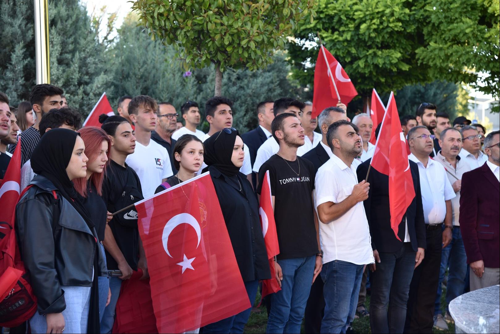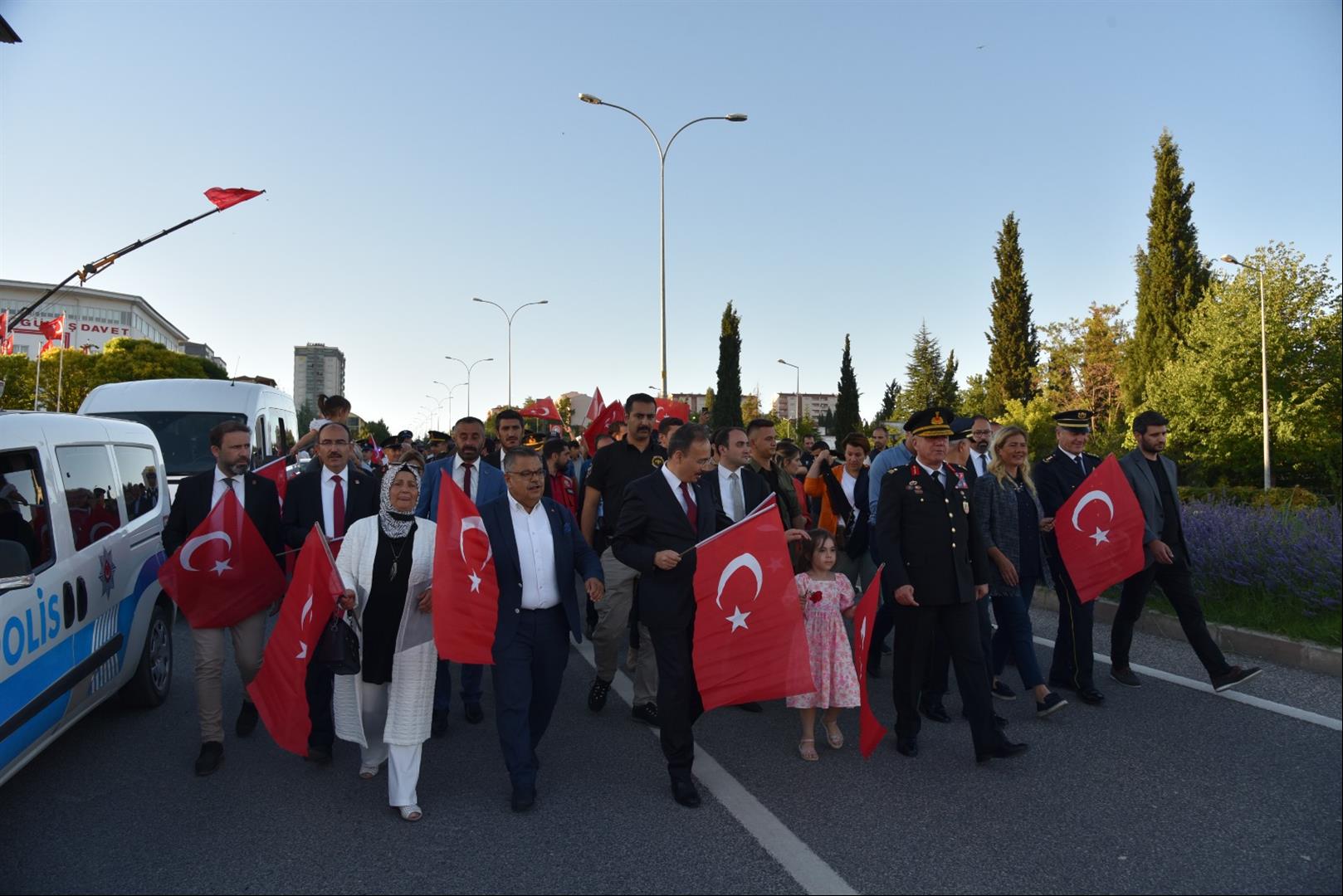 Kur’an-ı Kerim tilaveti ve dua edilmesinin ardından grup, Cumhuriyet Meydanı’na kadar Türk bayraklarıyla yürüdü.