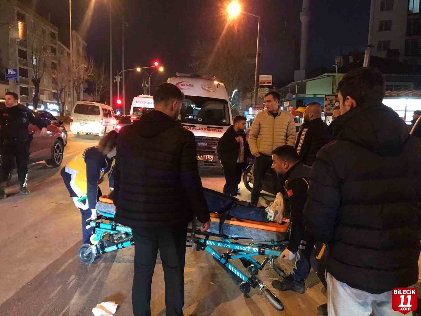 Alınan bilgilere göre; Bilecik sanayi istikametinden kent merkezine seyir halindeki Sinan C. idaresindeki 11 ABB 588 plakalı motorlu bisiklet, orta refujden koşarak yolun karşısına geçmek isteyen yaya Esma K.’ye çarptı.