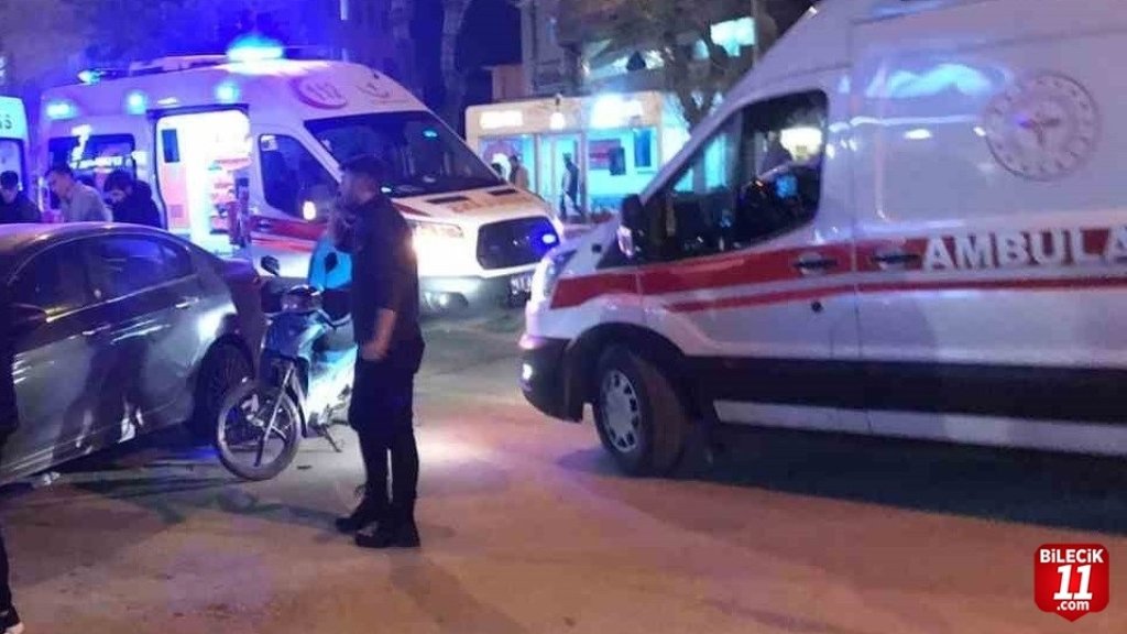Bilecik’te motosikletin yayaya çarpması sonucunda hem sürücü hem de yolun karşısına geçmek isteyen vatandaş yaralandı.