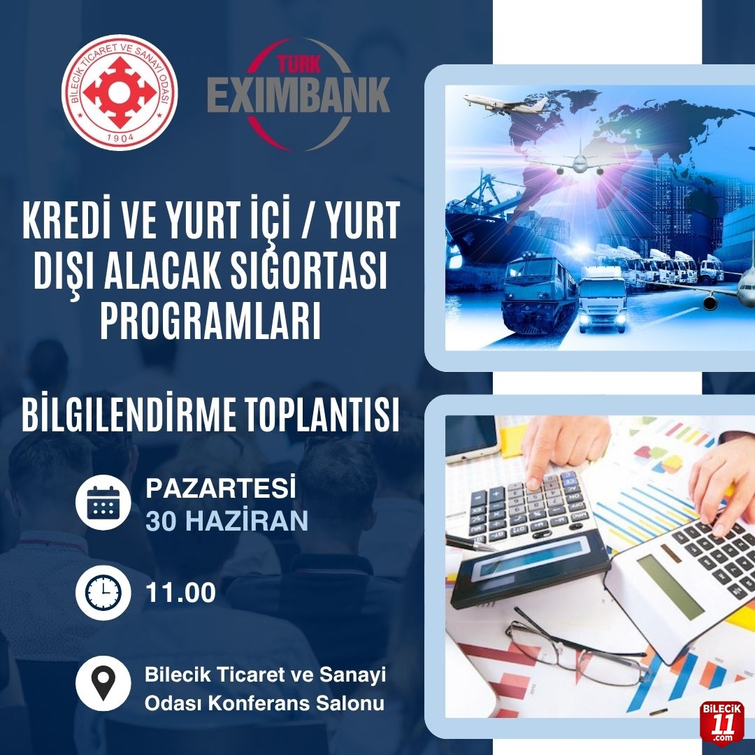 Bilecik Ticaret ve Sanayi Odası, ihracatçı firmaların finansmana erişimini kolaylaştırmak ve alacak risklerine karşı güvence sağlamak amacıyla önemli bir bilgilendirme toplantısına ev sahipliği yapacak.