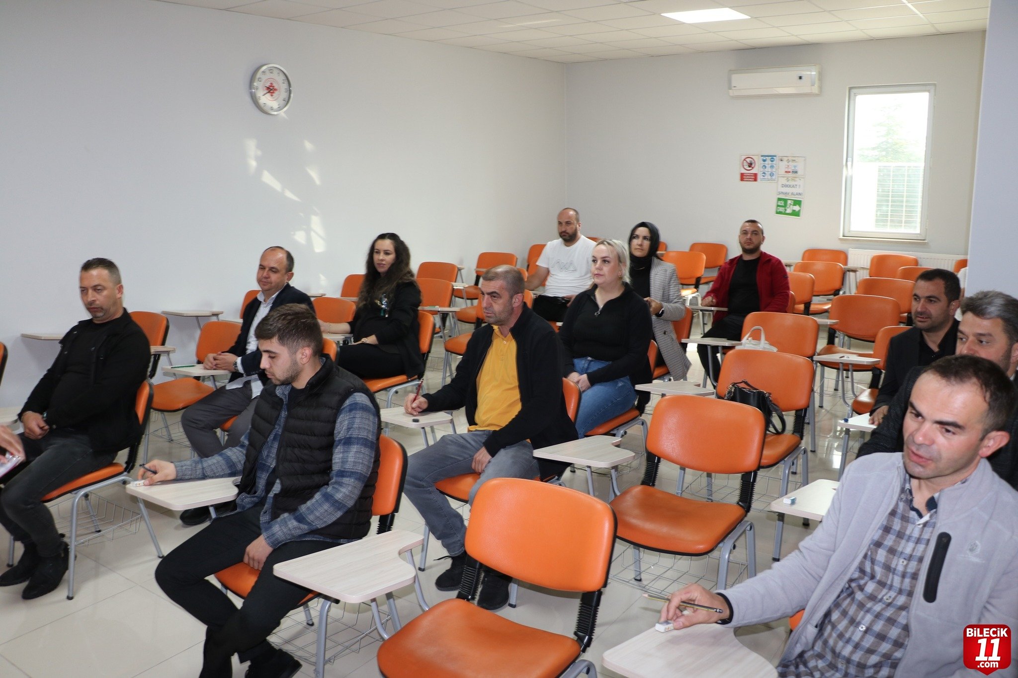 Bilecik TSO ve TOBB MEYBEM A.Ş. tarafından düzenlenen Motorlu Kara Taşıtları Alım ve Satım Sorumlusu Mesleki Yeterlilik Belgesini almak için müracaat eden 15 kişinin, yazılı sınav ve uygulamalı teori sınavlarında  MEYBEM değerlendiricisi Tahsin İçöz de görev aldı.