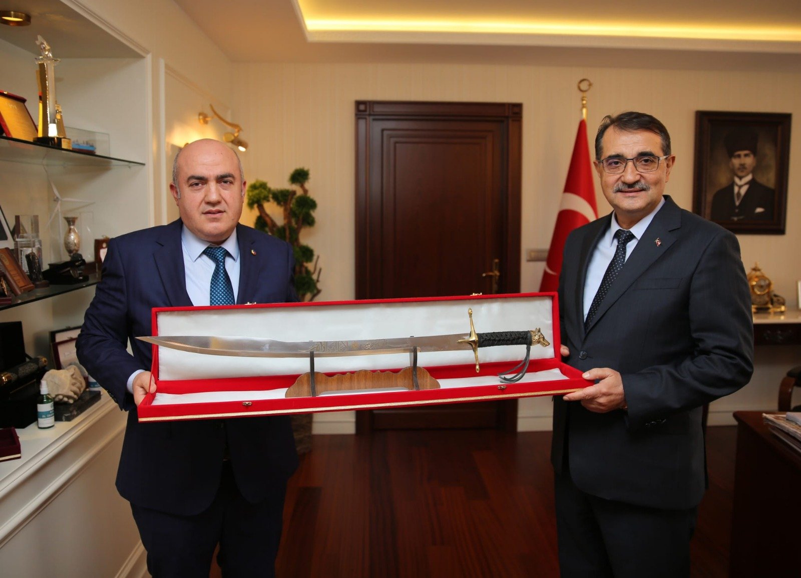 Diğer yandan, ziyaretin ardından Başkan Ergün, Bakan Dönmez’e ilimize özgü Söğüt’te yapılan “Osmanlı Kılıcı” hediye etti.