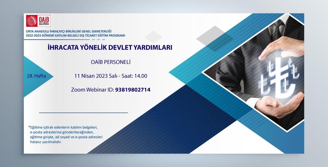 Orta Anadolu İhracatçı Birlikleri tarafından verilecek ve son derece katkı getirmesi planlanan eğitim için odadan yapılan duyuruda, şu ifadeler kullanıldı:
