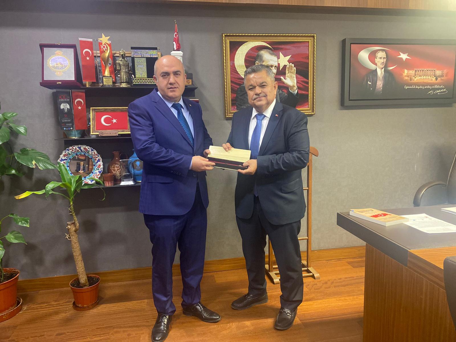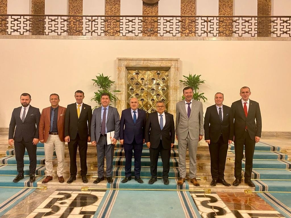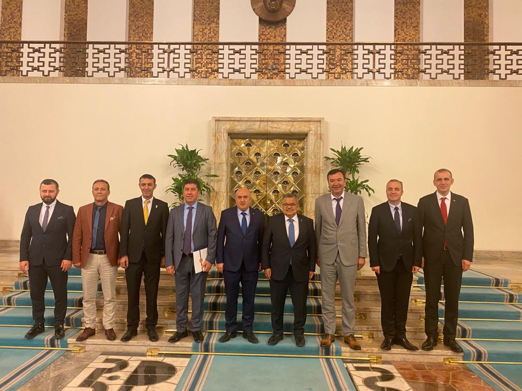 AK Parti Milletvekili Selim Yağcı’yı ve CHP Milletvekili Yaşar Tüzün’ü Meclis’teki makamlarında ziyaret eden heyet, Yağcı ve Tüzün’e özel yapım tespih hediye etti.