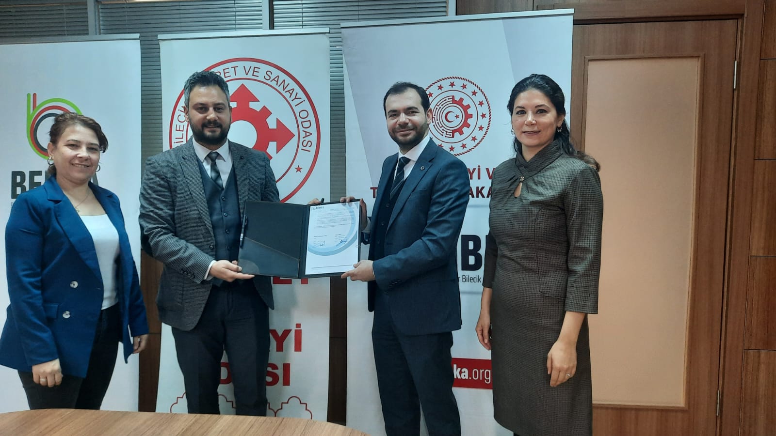 BEBKA Genel Sekreteri V. Sabri Bayram, BEBKA Bilecik Koordinatörü Banu Çiçek Güngördü, Oda Genel Sekreteri Doğan Gürkan Akyol ve Muhasebe Müdürü Ü. Aysev Güçlü’nün katılımıyla Bilecik Yatırım Destek Ofisi’nde düzenlenen törenle teknik destek sözleşmesi imzalandı.