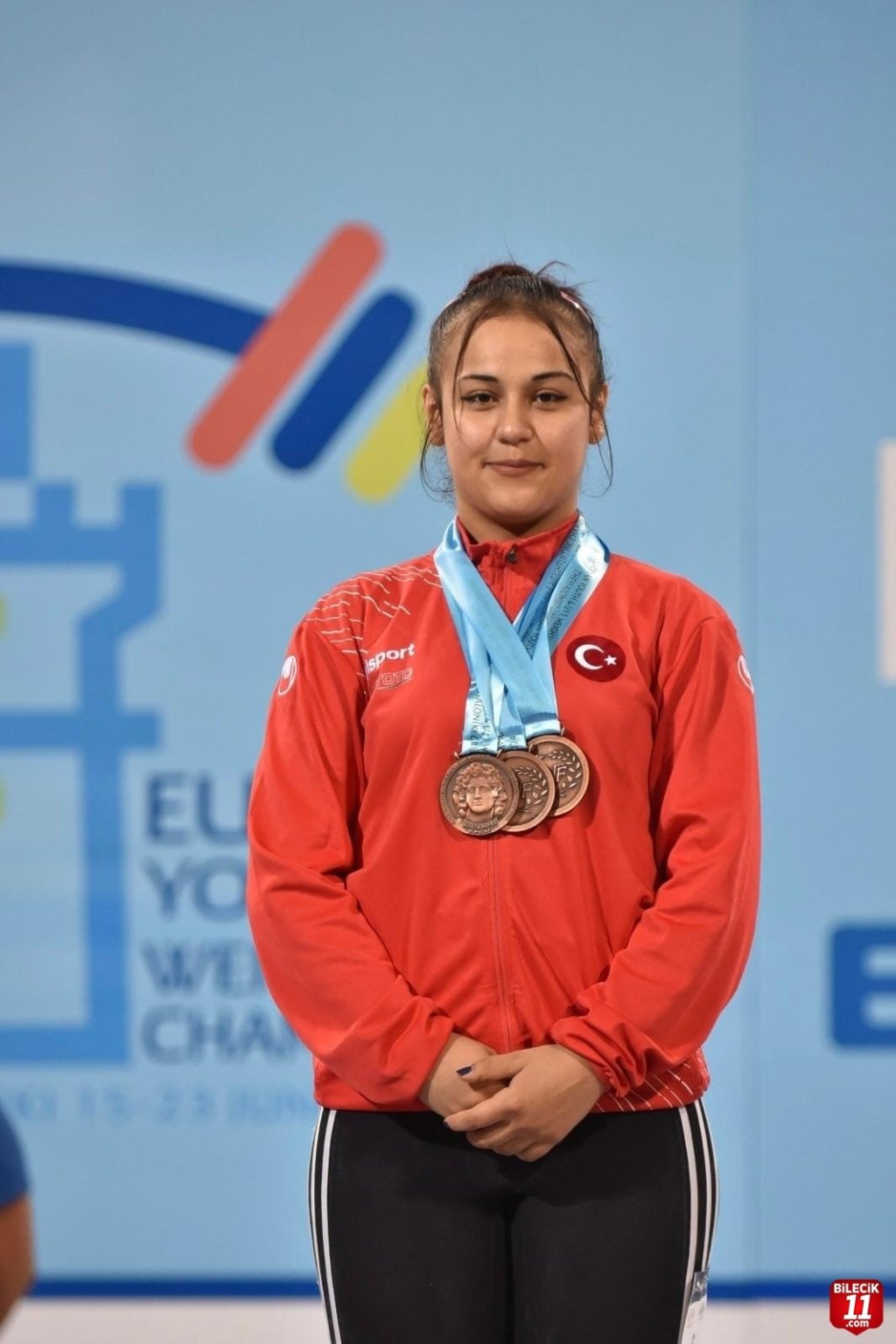 Yunanistan’da düzenlenen U15 Kadınlar Avrupa Şampiyonasında yarışan Bilecikli milli sporcu Belgin Gökçe Araz 81 kilogram sıkletinde koparmada 69 kilo, silkmede 81 kilo, toplamda da 150 kilogram kaldırarak 3 bronz madalya birden kazandı.