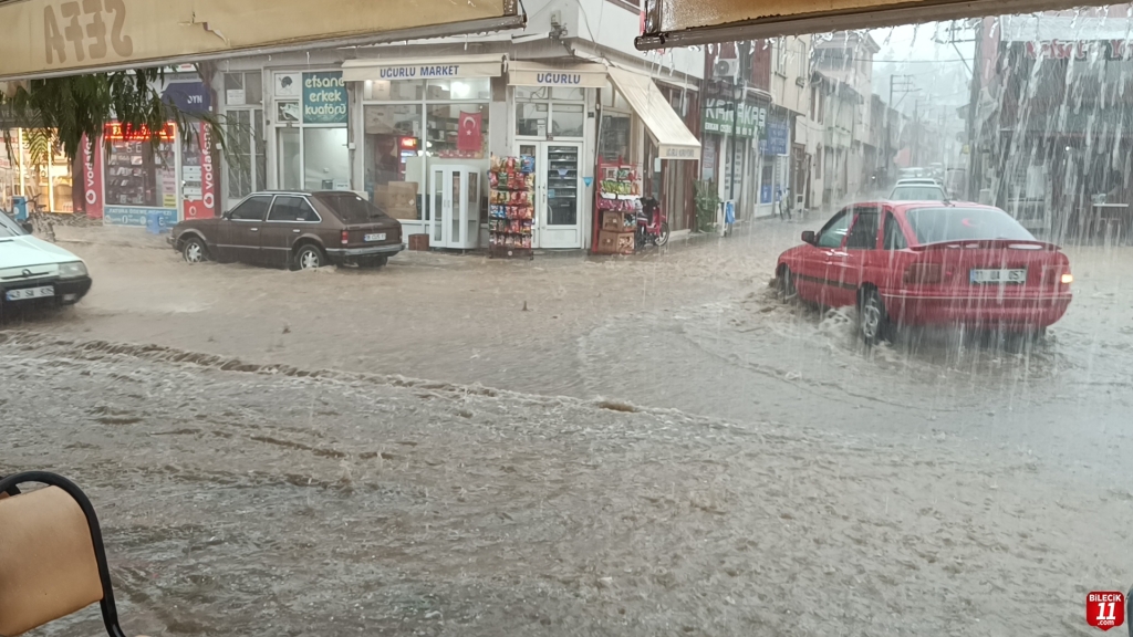 İlçede aniden bastıran sağanak nedeniyle bazı noktalarda su birikintileri oluştu, birçok ev ve iş yerini su bastı.