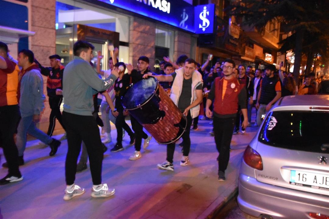 Spor Toto Süper Ligde Ankaragücü’nü dört golle mağlup ederek şampiyonluğunu ilan eden Galatasaray taraftarları tüm yurtta olduğu gibi Bilecik’te de sokağa döküldü.