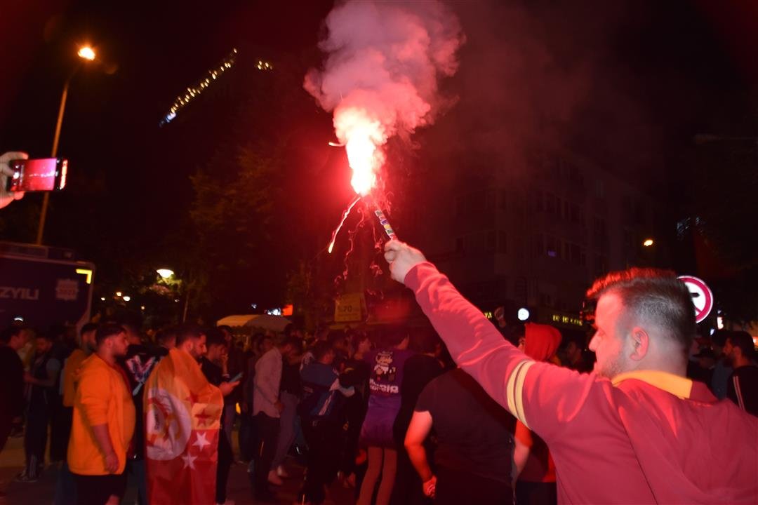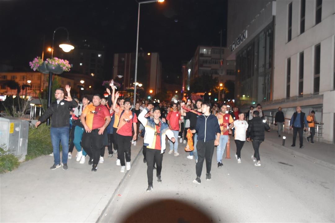Atatürk Parkı önünde toplanan Sarı-Kırmızılı taraftarlar şampiyonluklarını doyasıya kutladı. Marşlar, şarkılar ve meşaleler eşliğinde Bilecik sokaklarını inleten Cimbom’lular renkli görüntüler ortaya çıkmasına neden oldu.