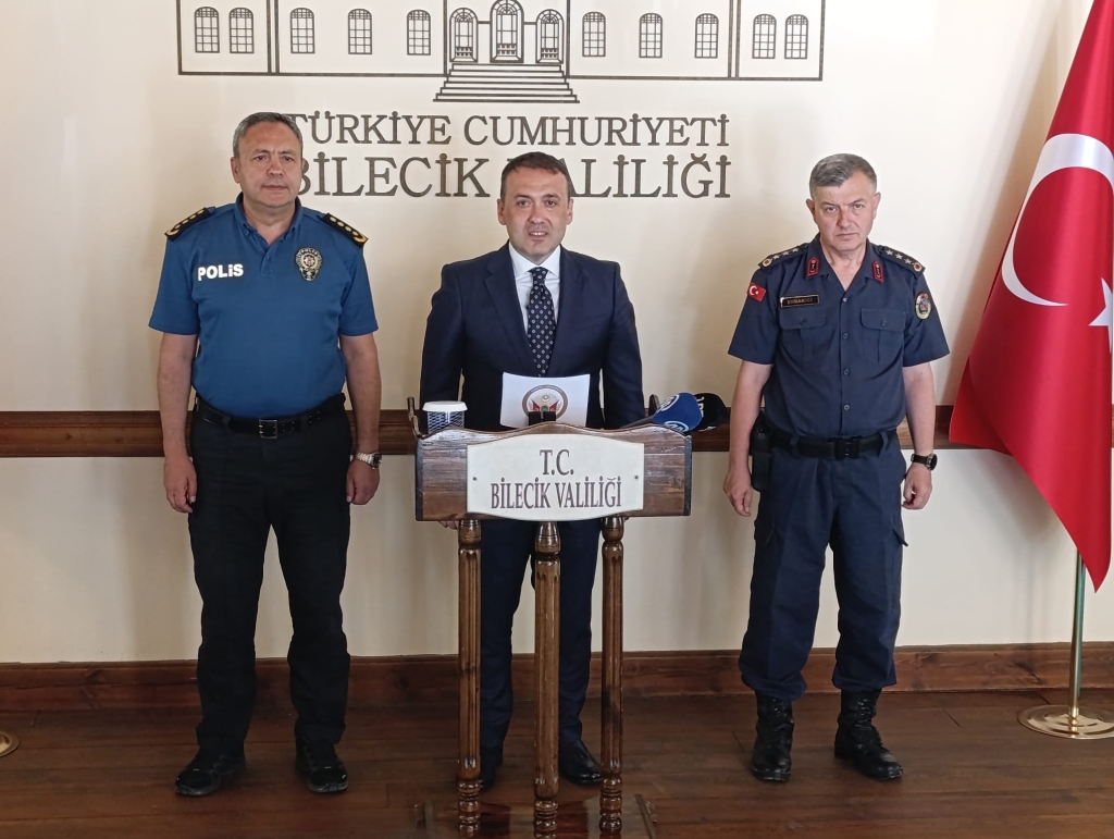 Bu süreçte, ilimizin huzur ve güvenliğinin sağlanması amacıyla büyük bir özveri ve fedakârlıkla görev yapan Emniyet Teşkilatımızın, Jandarma Komutanlığımızın ve Adli Birimlerimizin üstün gayretleri ile koordineli çalışmalarından dolayı teşekkürlerimi sunuyorum. Huzur şehri Bilecik’te Güvenlik güçlerimiz ve adli mercilerimizle el ele vererek çalışmalarımızı aralıksız devam ettireceğimizin altını önemle çizmek istiyorum.”