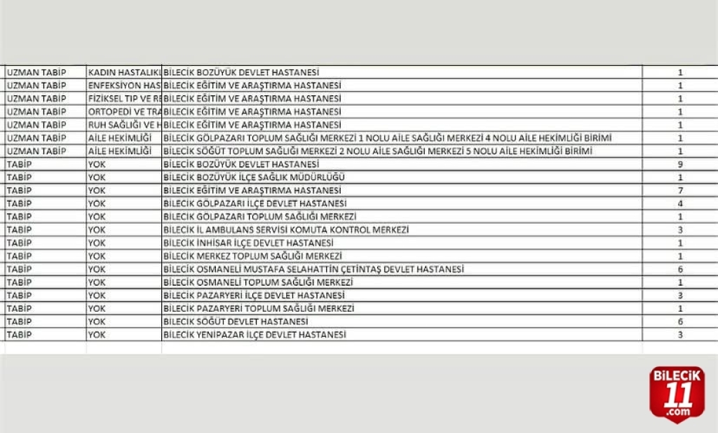– Bilecik Aile Sağlığı Merkezleri: 2 aile hekimi uzmanı