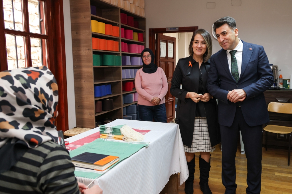 Vali Şefik Aygöl ve Hanımefendi Nazlı Aygöl, Bilecik Belediye Başkanı Melek Mızrak Subaşı, İl Jandarma Komutanı Ferdi Erbakıcı, İl Emniyet Müdürü Beyti Kalaycı ve Aile ve Sosyal Hizmetler İl Müdürü İlkay Türkoğlu ile birlikte Kadın Girişimi Üretim ve İşletme Kooperatifi’ni ziyaret ederek el emeği ürünleri yakından incelediler.