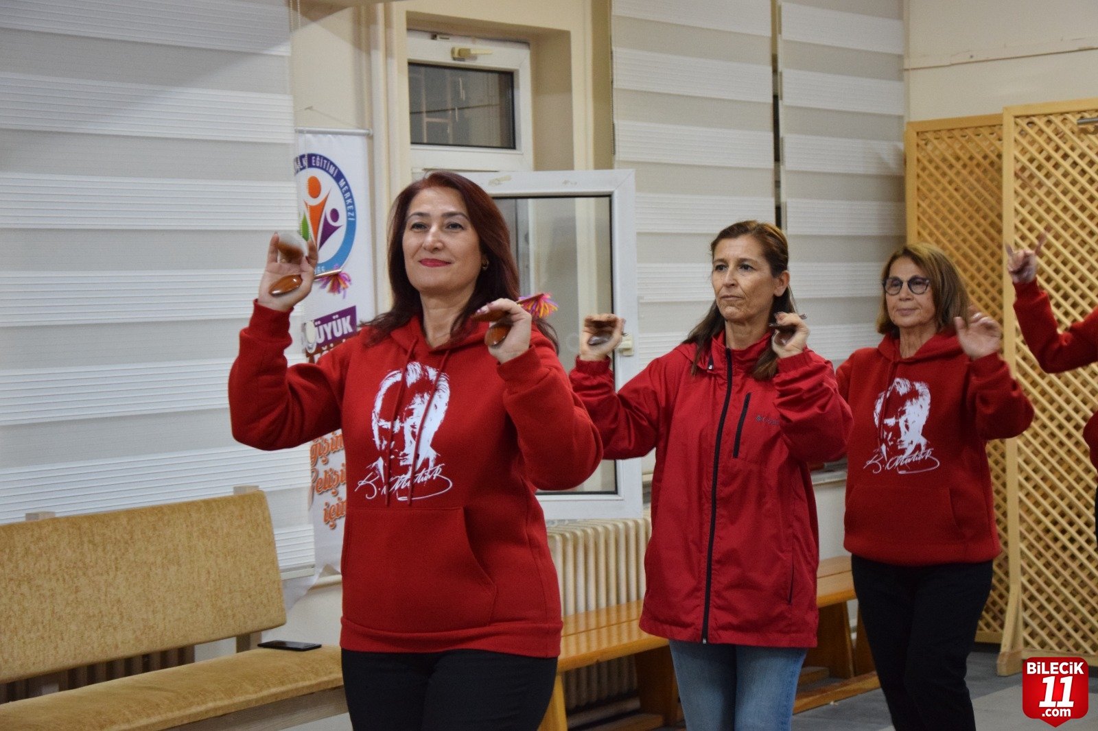 Bilecik’in Bozüyük ilçesinde yaşları 40 ile 68 arasında değişen 12 kadın, haftanın 2 akşamı buluşup halk oyunları kursunda hem oynuyor hem de müzikle stres atıyor.