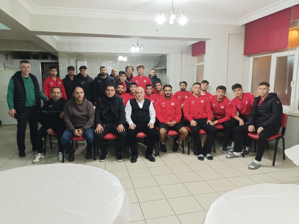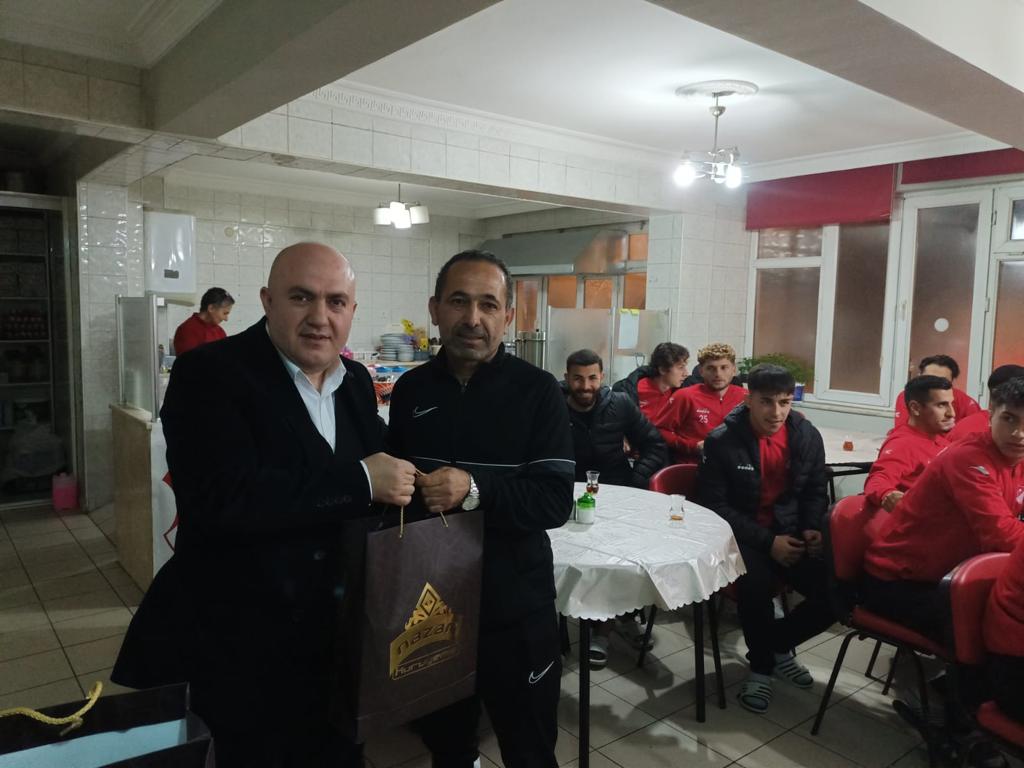 Başkan Ergün, başarıların daha da artmasını dileyerek futbolculara ve teknik heyete hediye takdim etti.