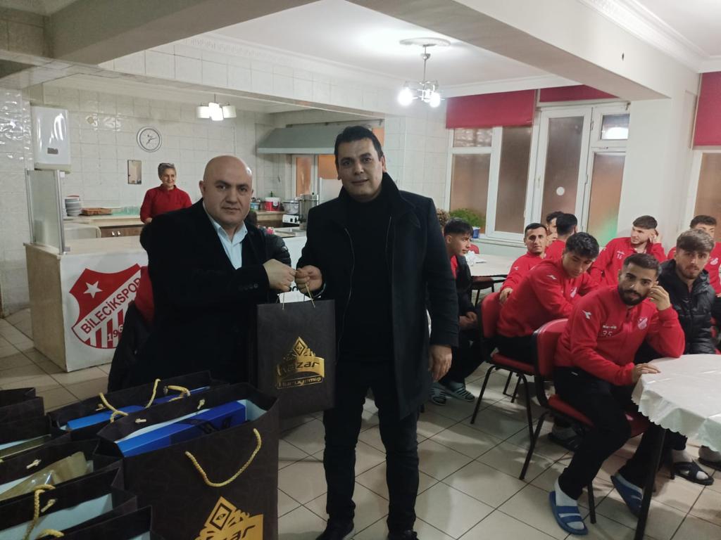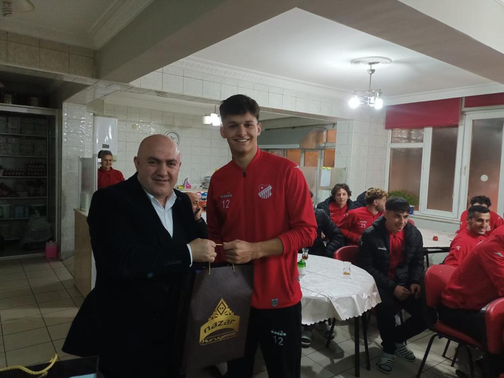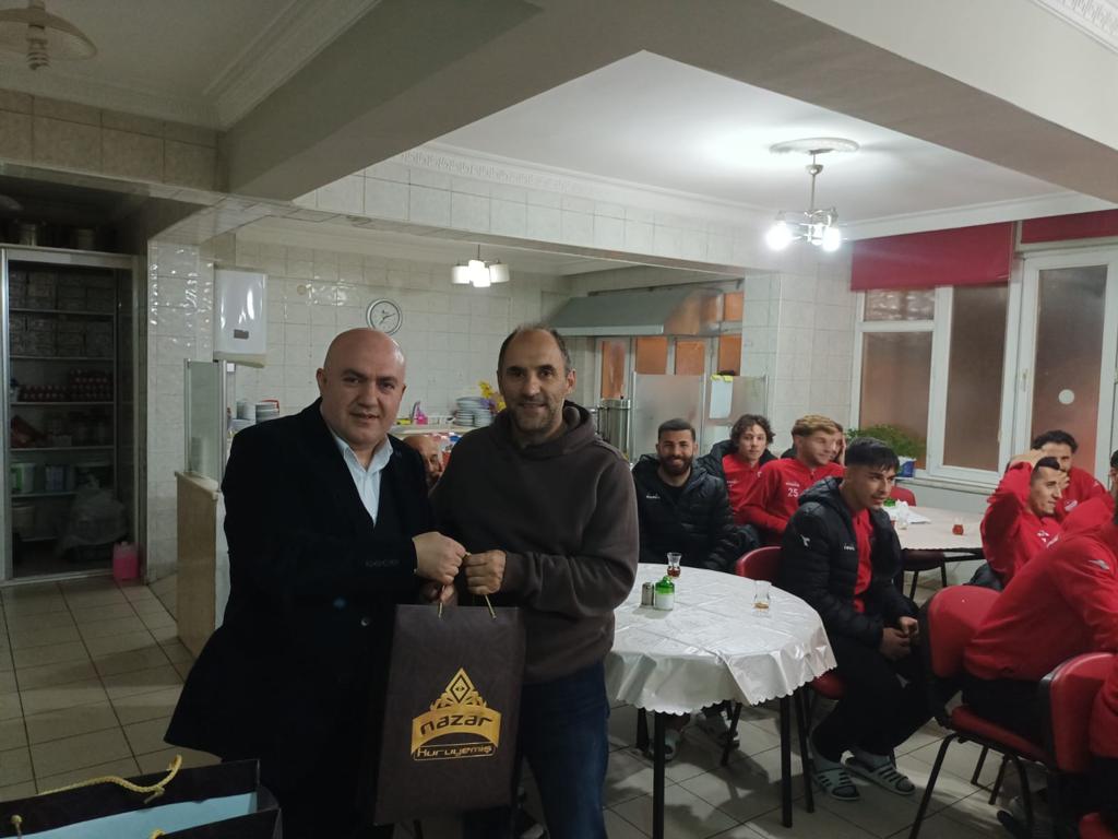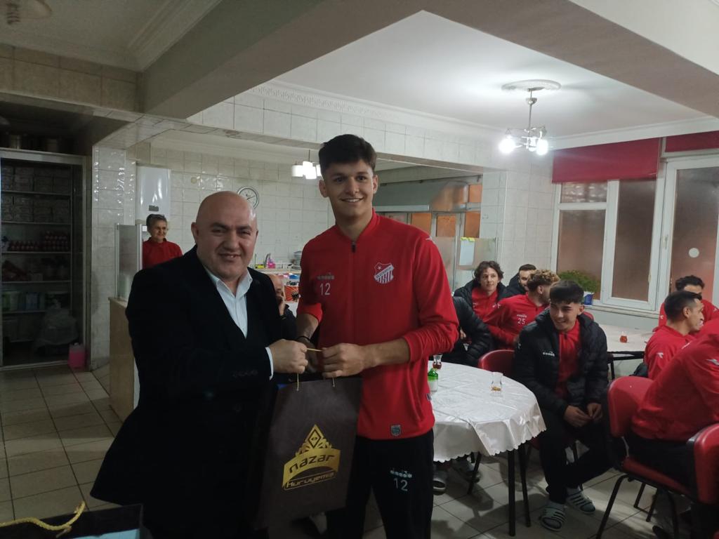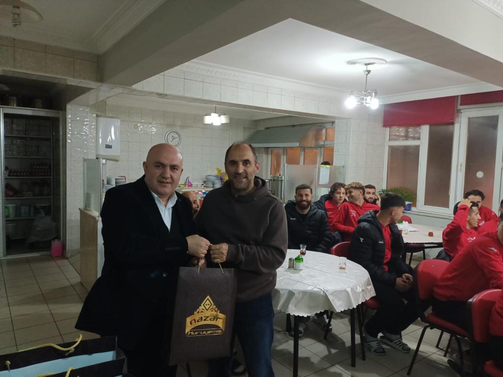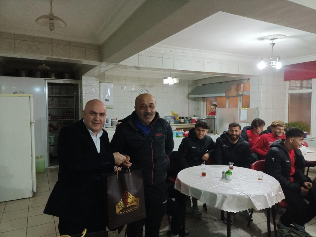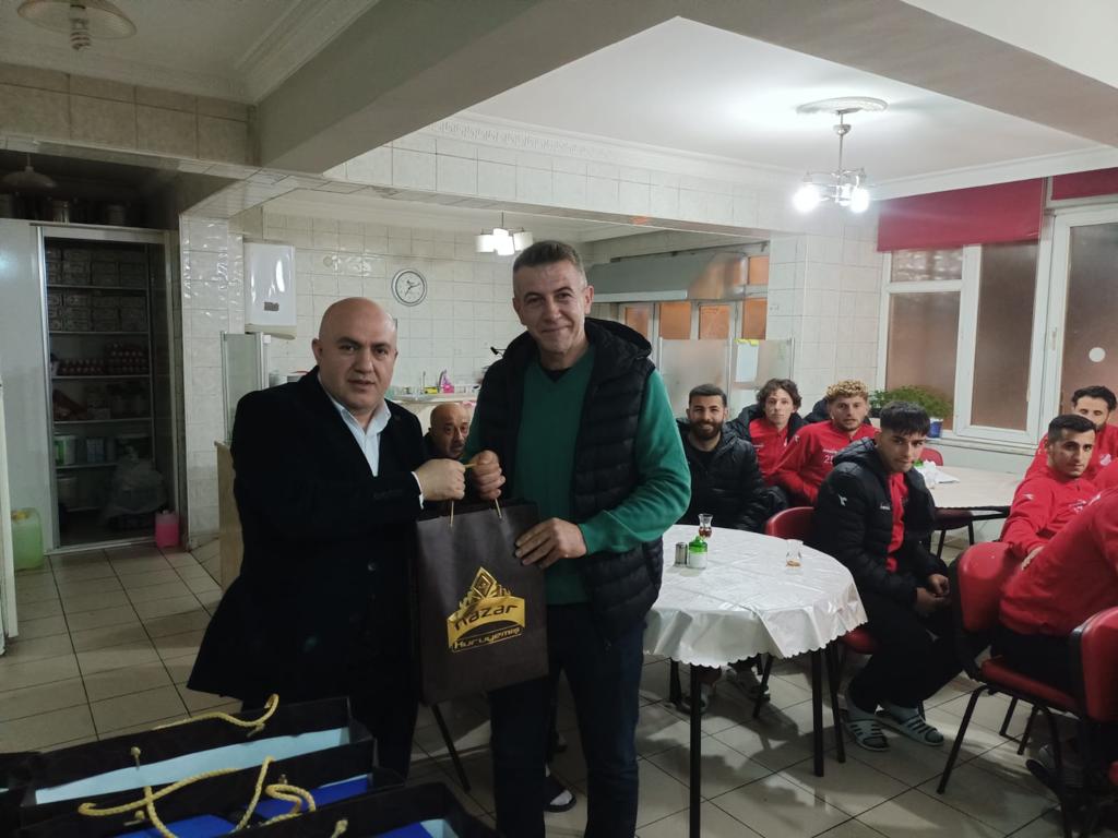 Başkan Ergün, başarıların daha da artmasını dileyerek futbolculara ve teknik heyete hediye takdim etti.