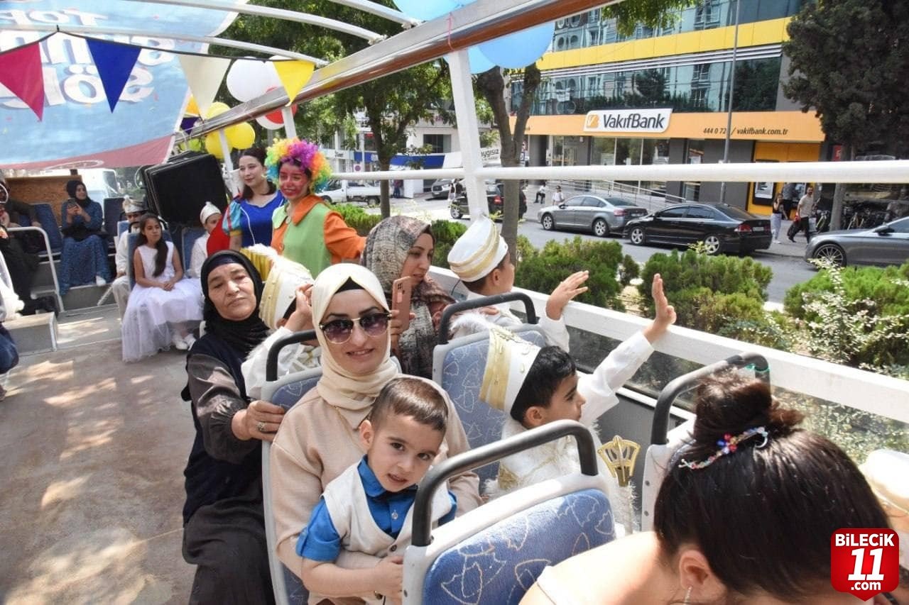 Bilecik Belediyesi Sosyal Destek Hizmetleri Müdürlüğü tarafından gerçekleştirilen sünnet şöleninde çocuklar, önce üstü açık otobüs ile şehir turu yaptı, daha sonra maskotlar ve eğlenceli gösteriler eşliğinde sünnet şöleni yaşadı.