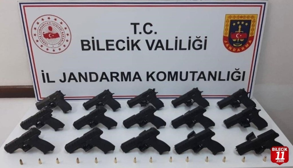 Bilecik İl Jandarma Komutanlığınca Bozüyük’te gerçekleştirilen yol kontrol uygulamasında şüphe üzerine durdurulan araçta; 15 adet ruhsatsız tabanca, şarjör ve 14 adet 9 mm çapında fişek ele geçirildi.