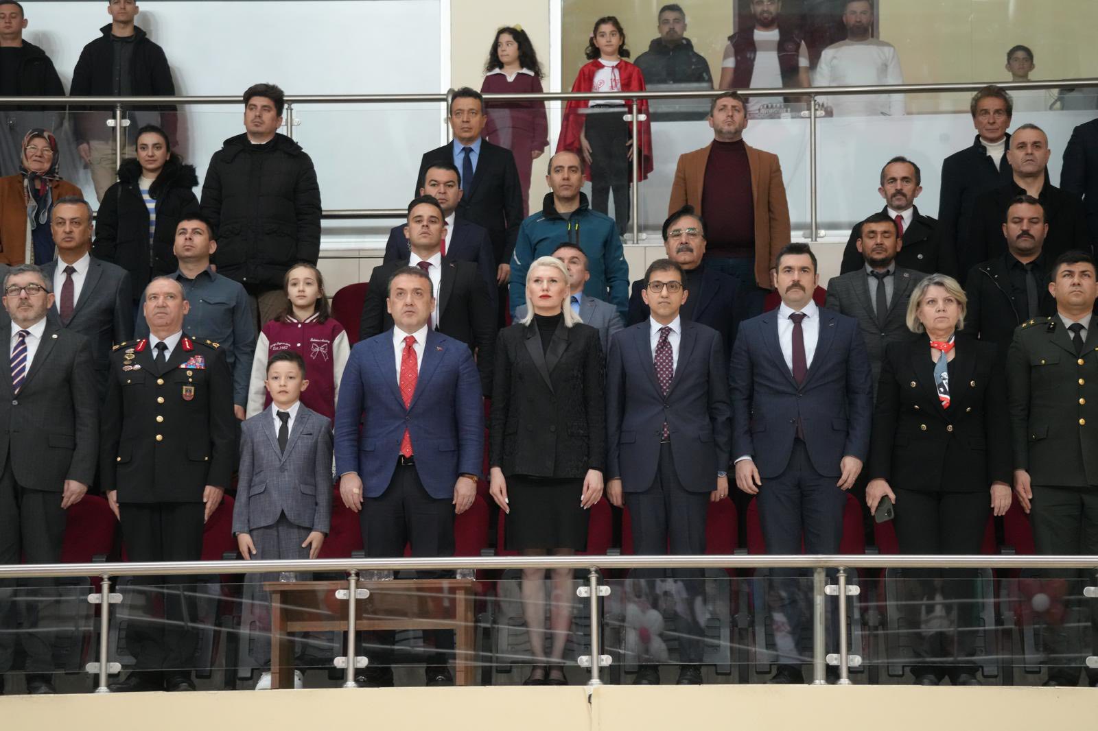 Etkinlikler, İstasyon Spor Salonu’nda devam etti. Burada gerçekleştirilen programa; Vali Faik Oktay Sözer, Bilecik Belediye Başkanı Melek Mızrak Subaşı, İl protokolü, kurum amirleri, Siyasi ve STK temsilcileri, öğrenciler ve vatandaşlar katıldı.