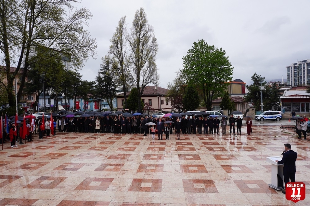 Kutlama programı kapsamında ilk olarak Cumhuriyet Meydanında Çelenk Sunma Töreni gerçekleştirildi. Çelenk Sunma Törenine Bilecik Belediye Başkanı Melek Mızrak Subaşı, İl Milli Eğitim Müdürü Serdal Şimşek, kurum müdürleri, siyasi parti ve STK temsilcileri ile öğretmen ve öğrenciler katıldı.