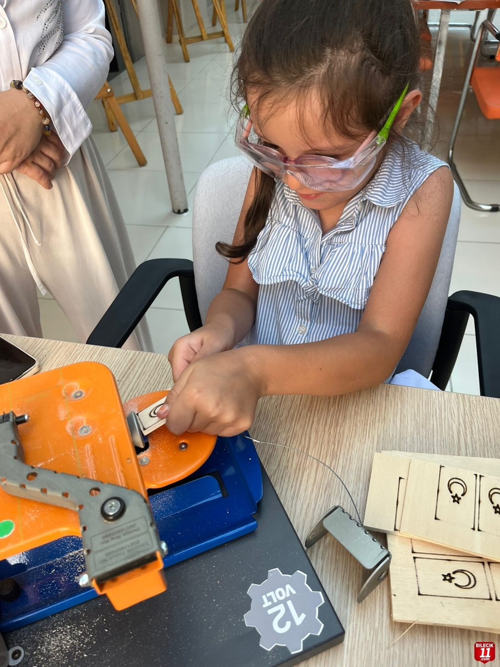 Ahşap atölyesinde katılımcılar, lazer kesim ve boyama teknikleriyle Türk bayrağı temalı anahtarlıklarını kendileri tasarladı.