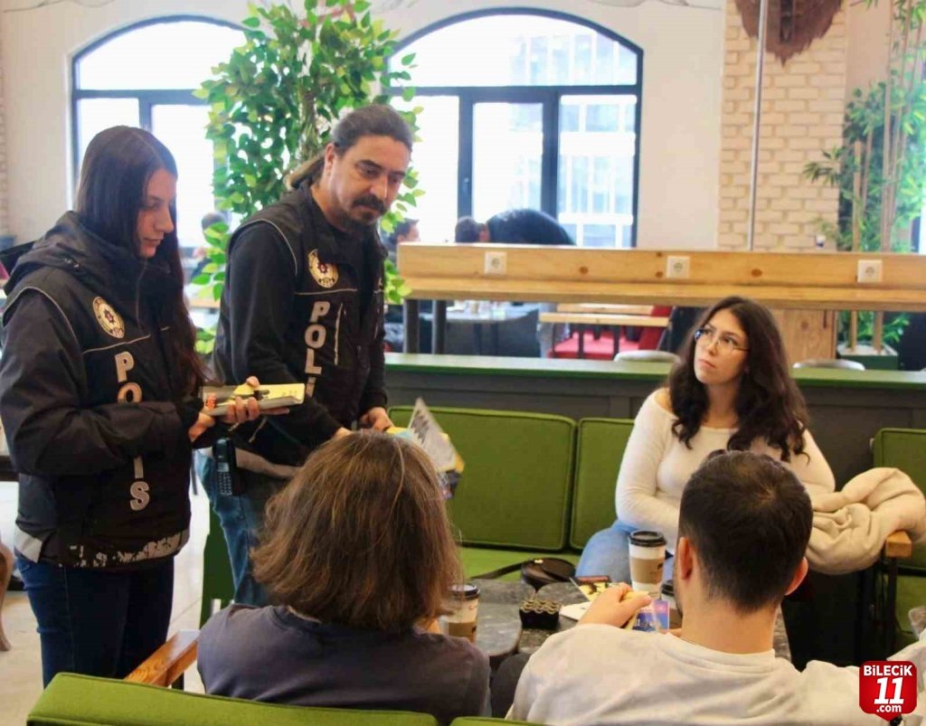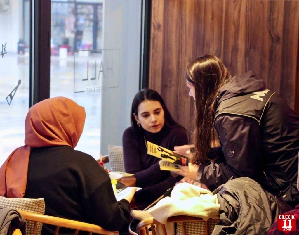 Ekipler, vatandaşlara ‘Uyuma’ uygulaması ve ‘narkotikpolisianne.com’ web sitesi hakkında bilgi aktararak broşür dağıtımı gerçekleştirdi.