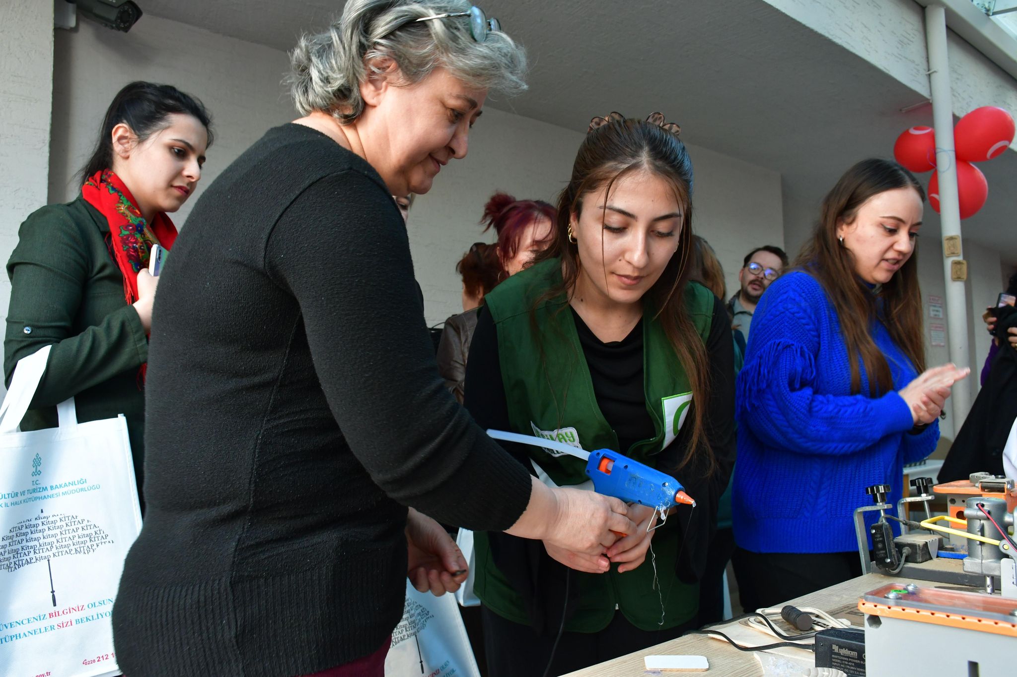 Söyleşinin ardından, Halk Kütüphanesi Ahşap Maker Atölyesi’nde Yeşilay gönüllüleri, Kent Konseyi Kültür Sanat Meclisi üyeleri ve vatandaşların katılımıyla 8 Mart Dünya Kadınlar Günü temalı bir atölye çalışması gerçekleştirildi. Kadınlar, kendi ahşap hediyeliklerini yaparak hem keyifli vakit geçirdiler hem de el becerilerini geliştirdiler.