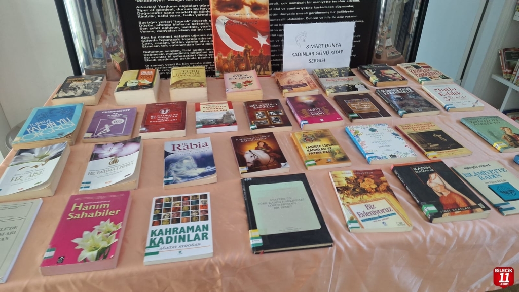Etkinlikler kapsamında, kütüphanede “Kadın” temalı bir kitap sergisi de açıldı. Sergide, kadın yazarların eserleri ve kadın temalı kitaplar yer aldı.