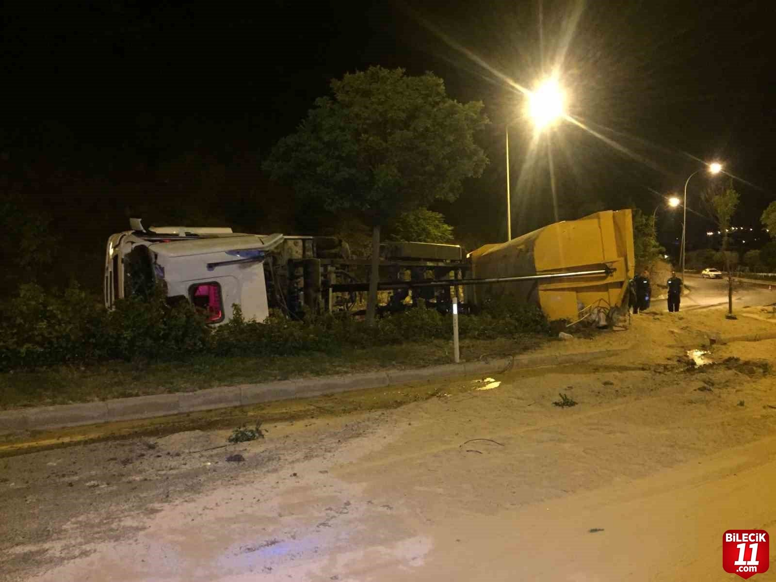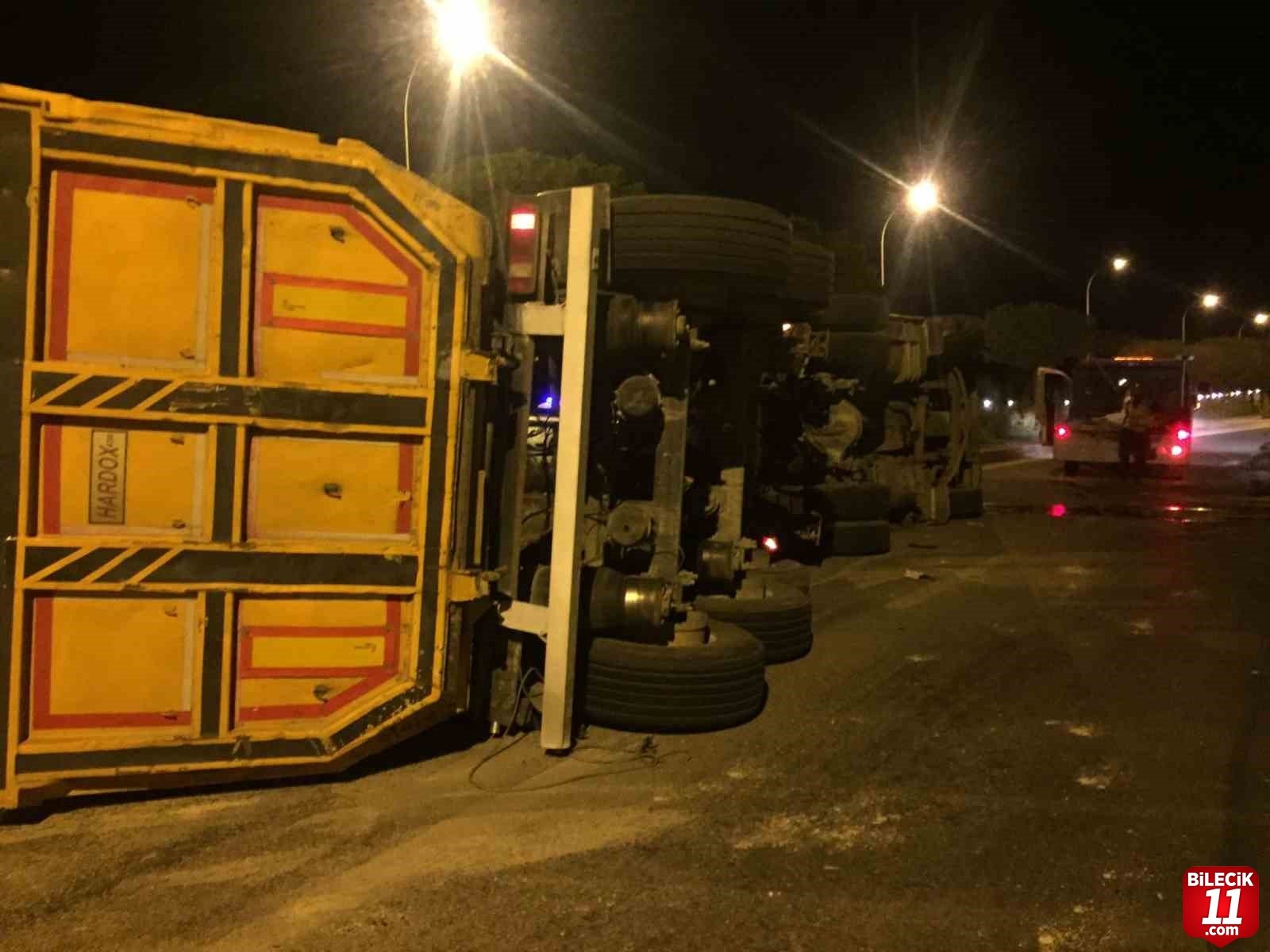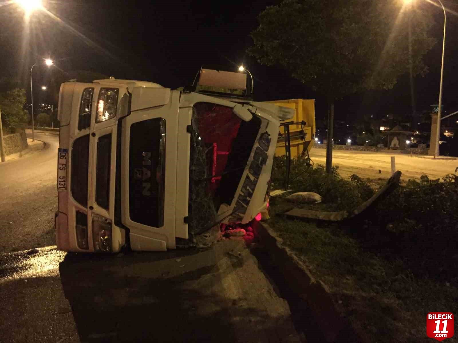 Bilecik’te seyir halinde kontrolden çıkan kamyondevrilirken, sürücüsü olay yerinden kaçtı.