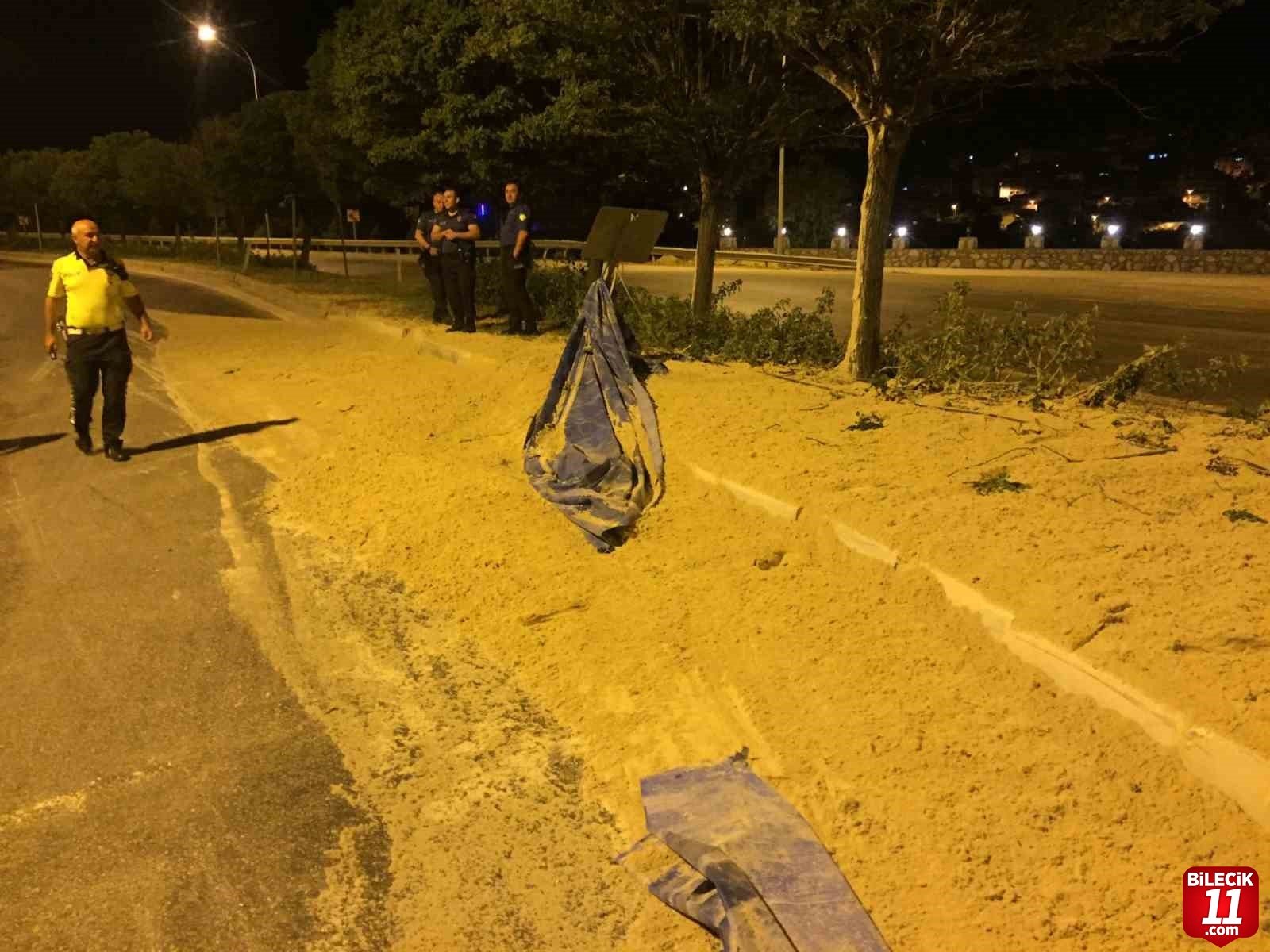 Olay yerine gelen polis ekipleri sürücüyü kısa sürede tespit etti. Öte yandan yola saçılan malzemeler karayolları ekiplerince kepçe yardımıyla toplandı.