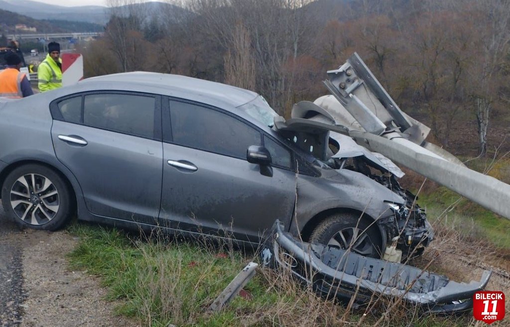 Edinilen bilgiye göre, Bilecik – Bozüyük karayolunda seyir halindeki S.S. idaresindeki 52 AV 495 plakalı otomobil, direksiyon hakimiyetini kaybetmesi sonucu bariyerlere çarptı.