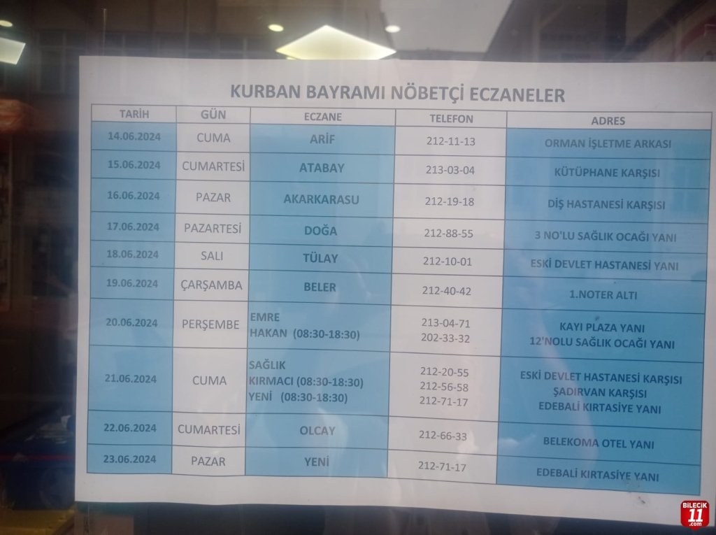 3. BiLECiK’TE BAYRAMDA HANGi ECZANELER NÖBETÇi?