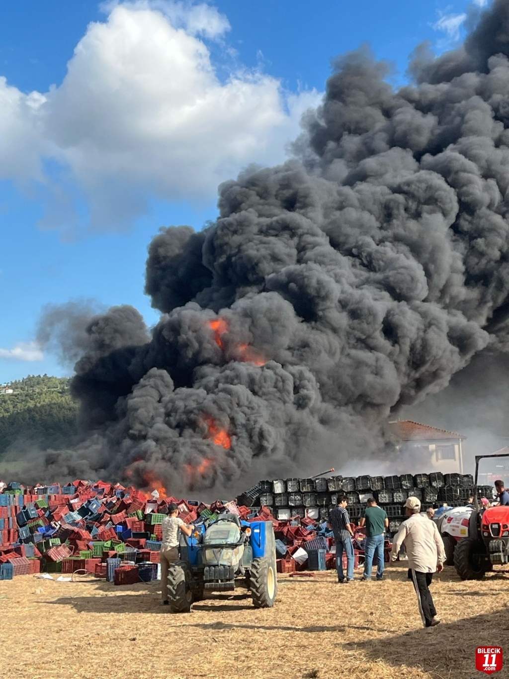 Yangını fark eden vatandaşlar durumu jandarma ve itfaiye ekiplerine bildirdi. Plastik kasalarının tutuşmasıyla bölgeyi yoğun duman kapladı.