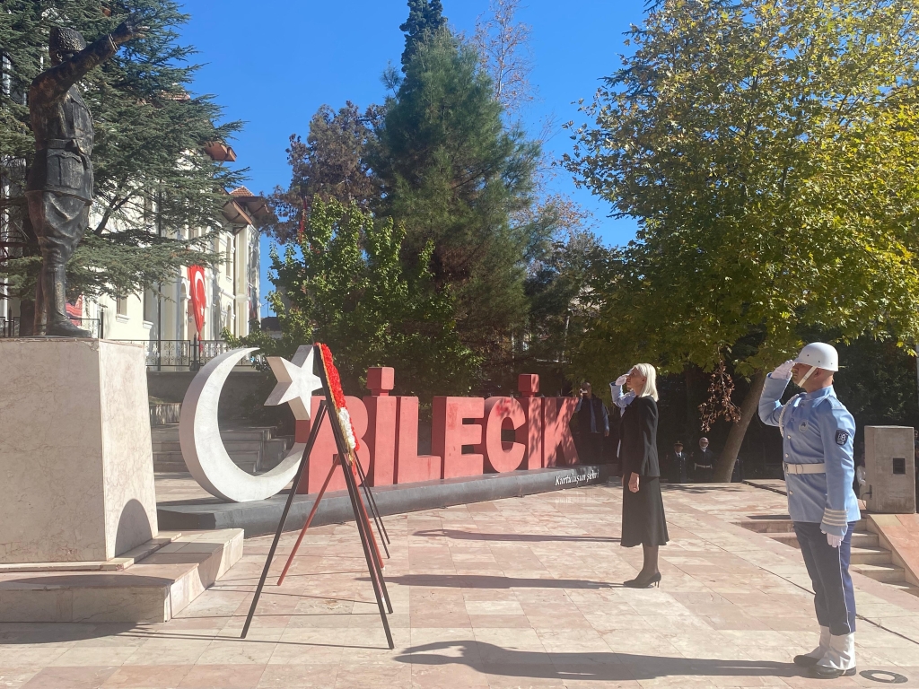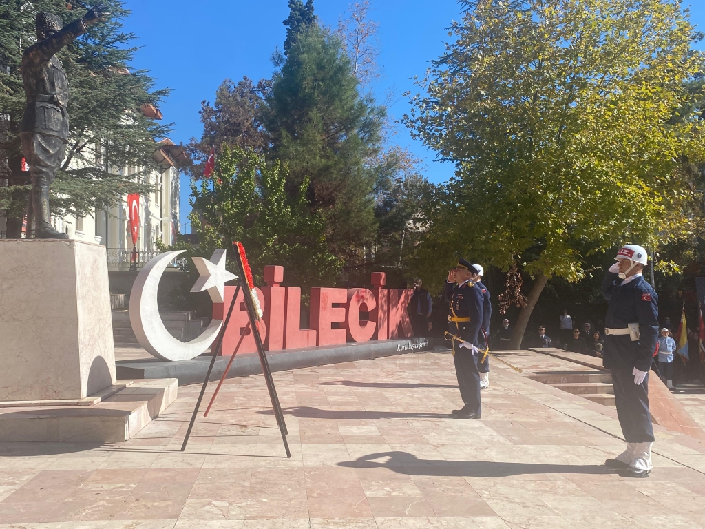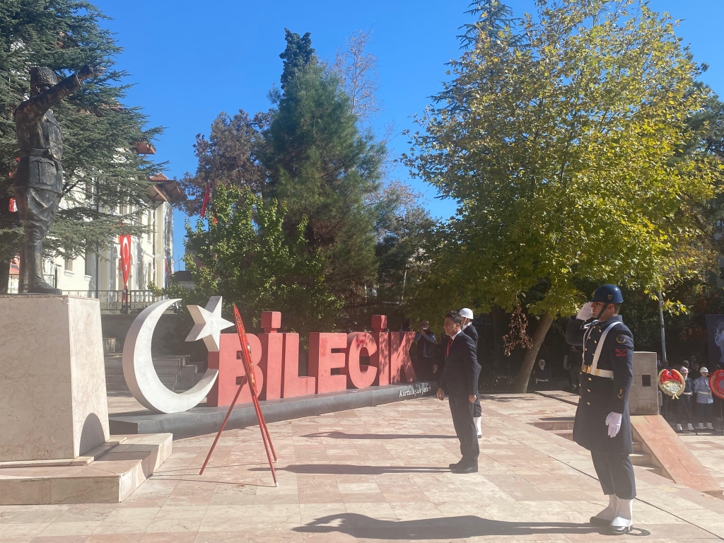 Cumhuriyet Meydanında da Bilecik Valiliği, Garnizon Komutanlığı ve Belediye Başkanlığı tarafından Atatürk anıtına çelen sunuldu.