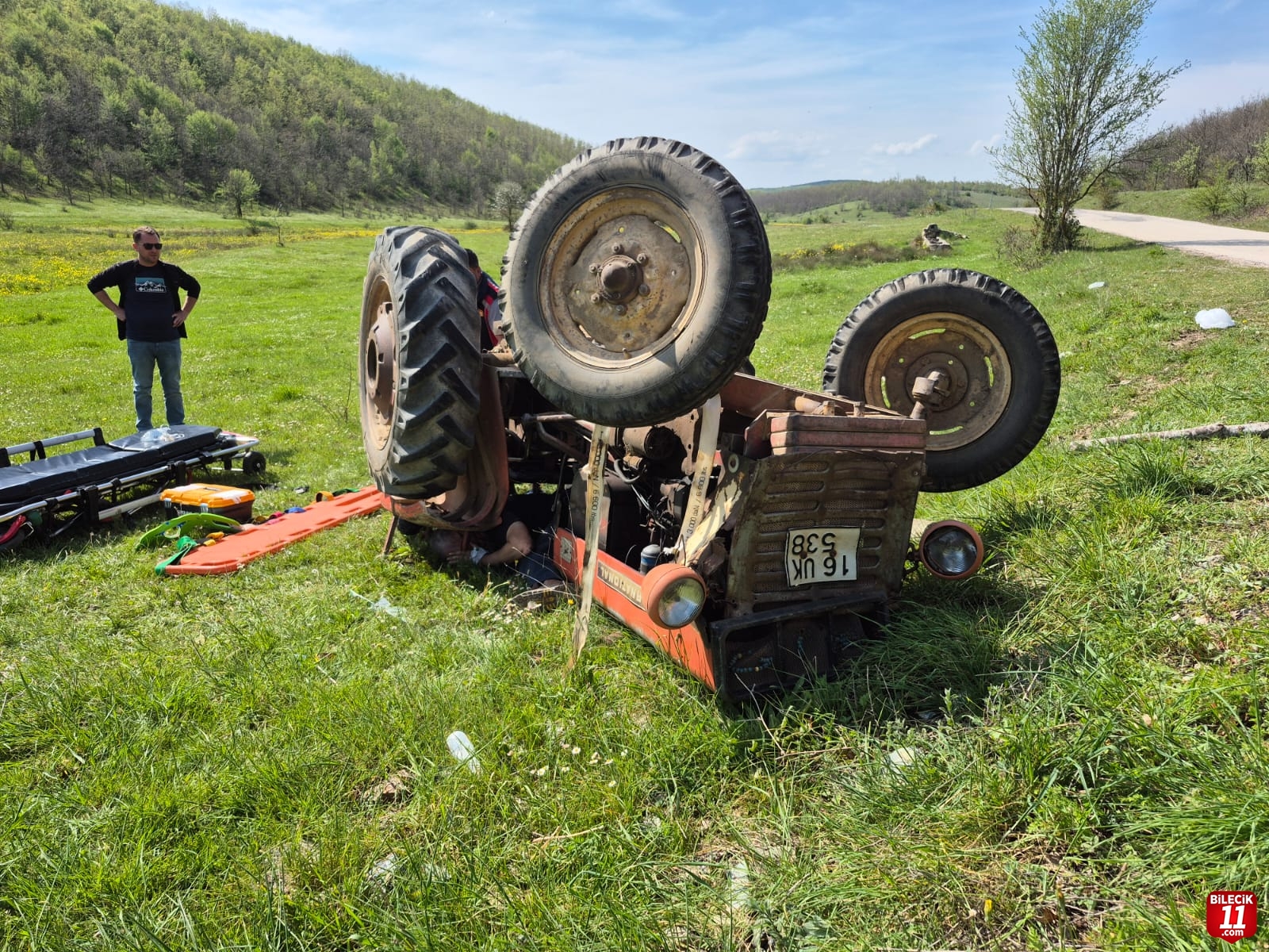 Bilecik’in Pazaryeri ilçesinde devrilen traktörün sürücüsü yaralandı.