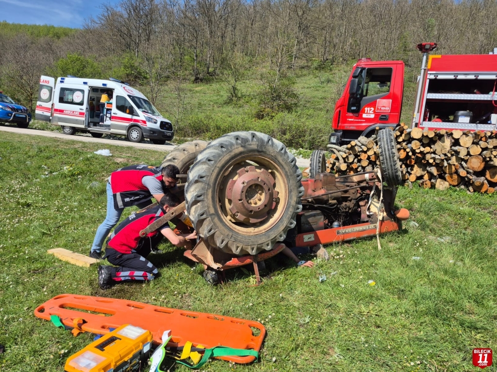 İş makinesi yardımıyla traktörün altından yaralı olarak çıkartılan Ercan Ö. sağlık ekiplerince Bozüyük Devlet Hastanesi’ne kaldırıldı.